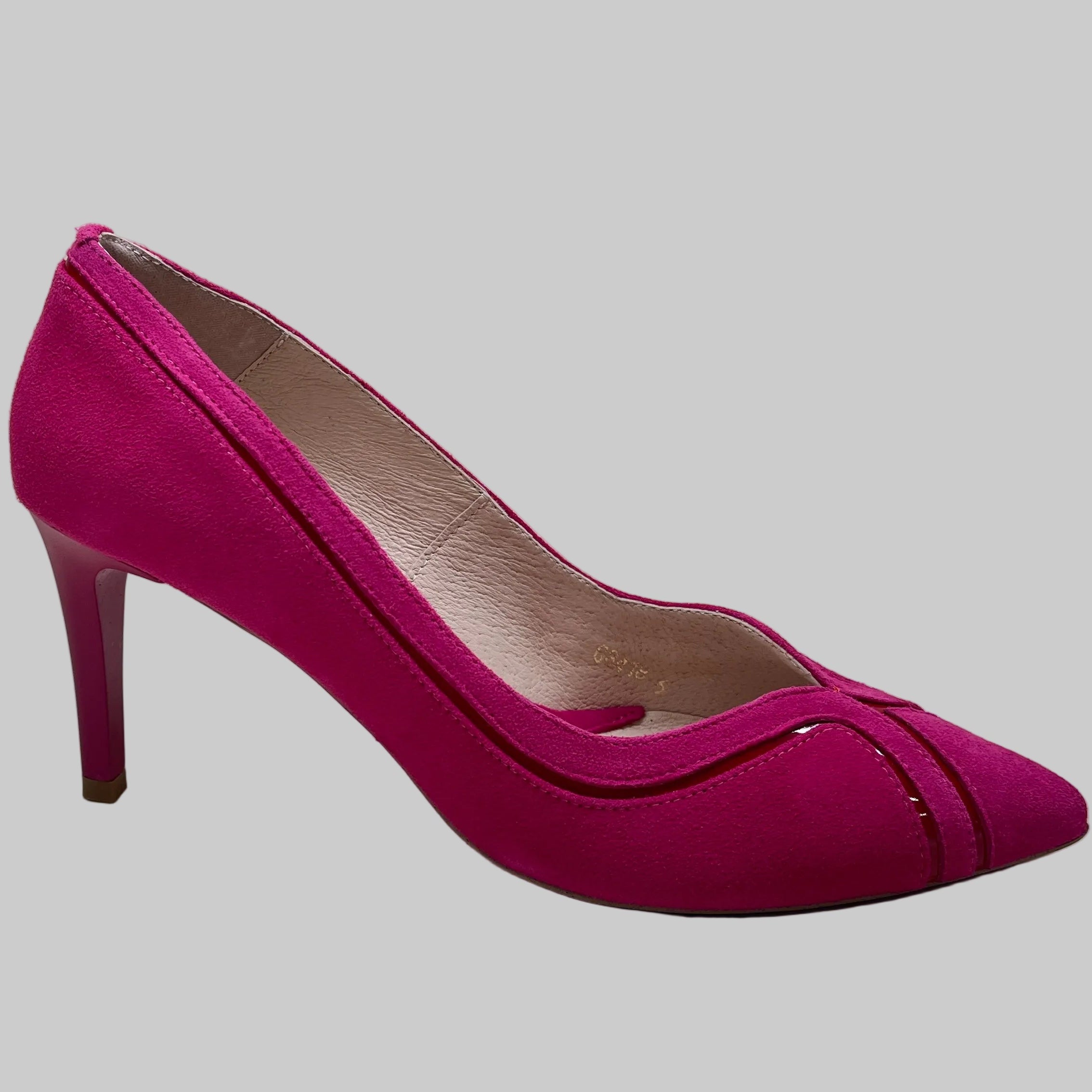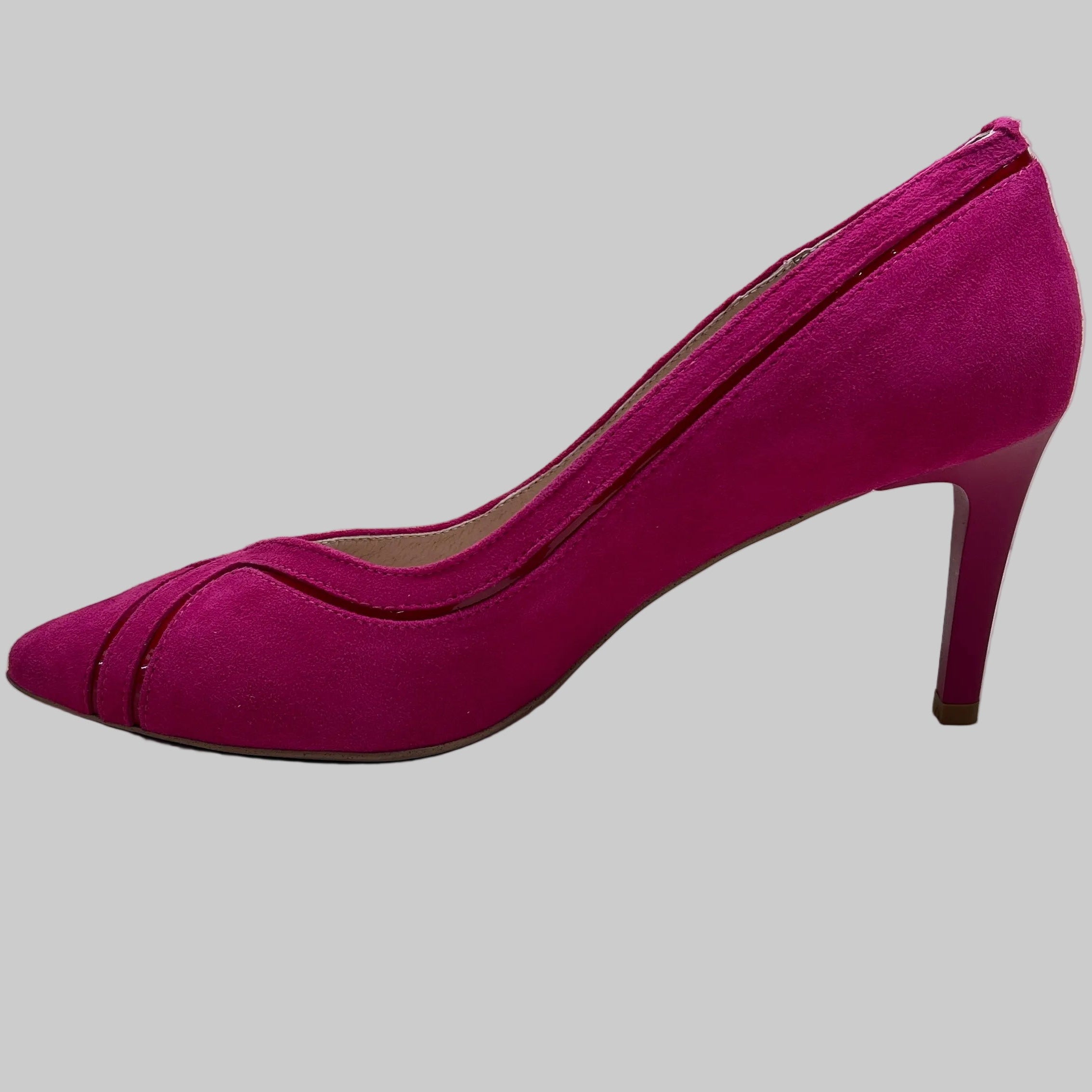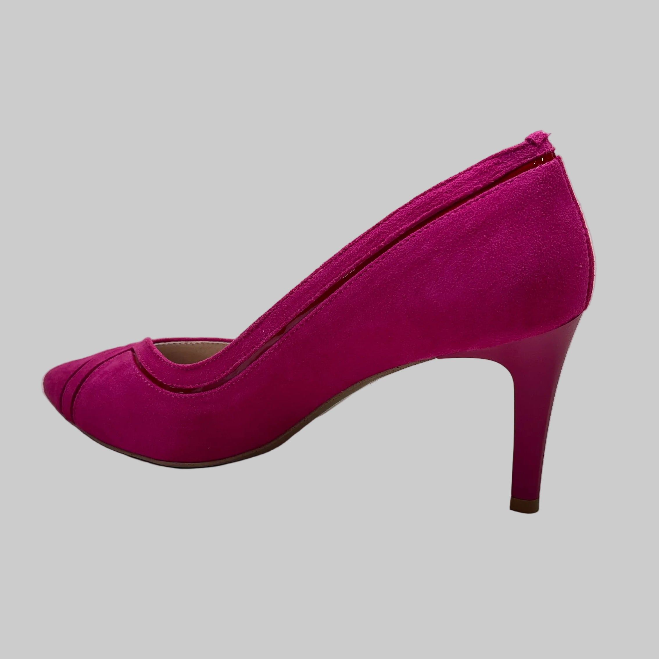 FABUCCI Fuchsia Pink Suede Court Shoe  with red inset.