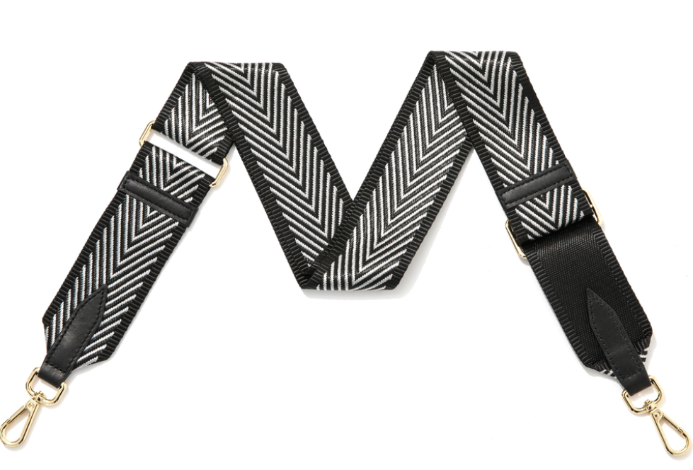Fabucci Black and White V stripe Print Crossbody/Shoulder Strap