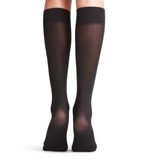 The FALKE Black 50 Denier knee-high stockings offer a matte effect and feature a comfortable Sensitive Top band. This premium product boasts a Superbly comfortable fit due to the innovative Comfortable Sensitive Top band.