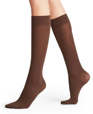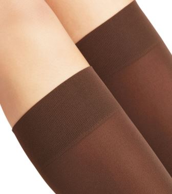The FALKE Brown 50 Denier knee-high stockings offer a matte effect and feature a comfortable Sensitive Top band. This premium product boasts a Superbly comfortable fit due to the innovative Comfortable Sensitive Top band.