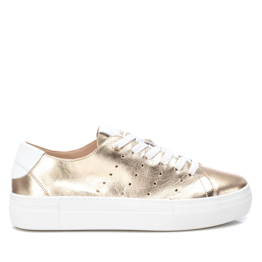 Introducing the CARMELA Gold Leather Platform Trainer. Crafted from luxurious leather and boasting a lightweight platform sole, this trainer is the perfect choice for stylish and comfortable summer fashion. With its exceptional durability, you can wear it all season long.