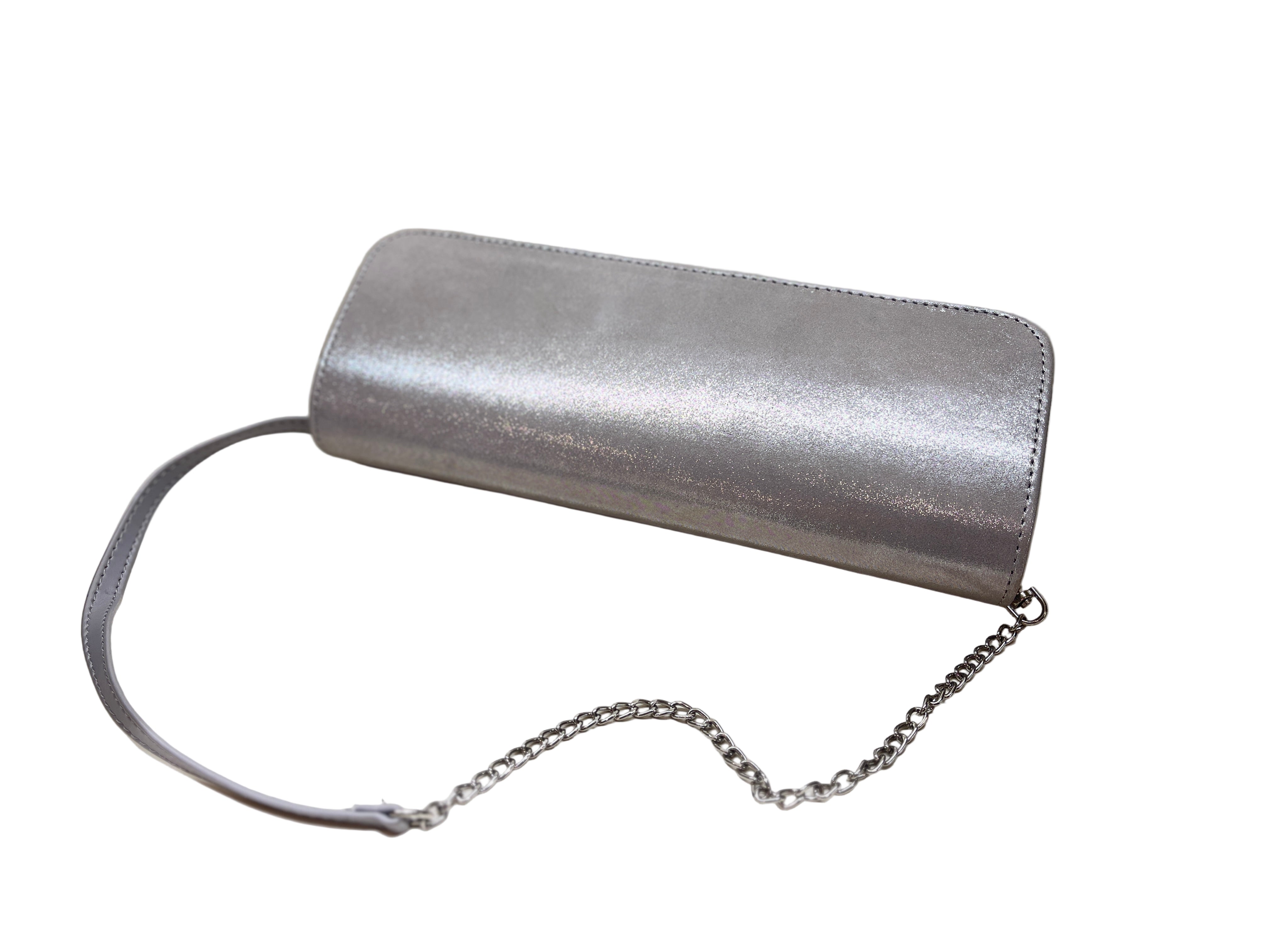 FABUCCI Silver Leather envelope Clutch bag with detachable leather and silver chain strap.