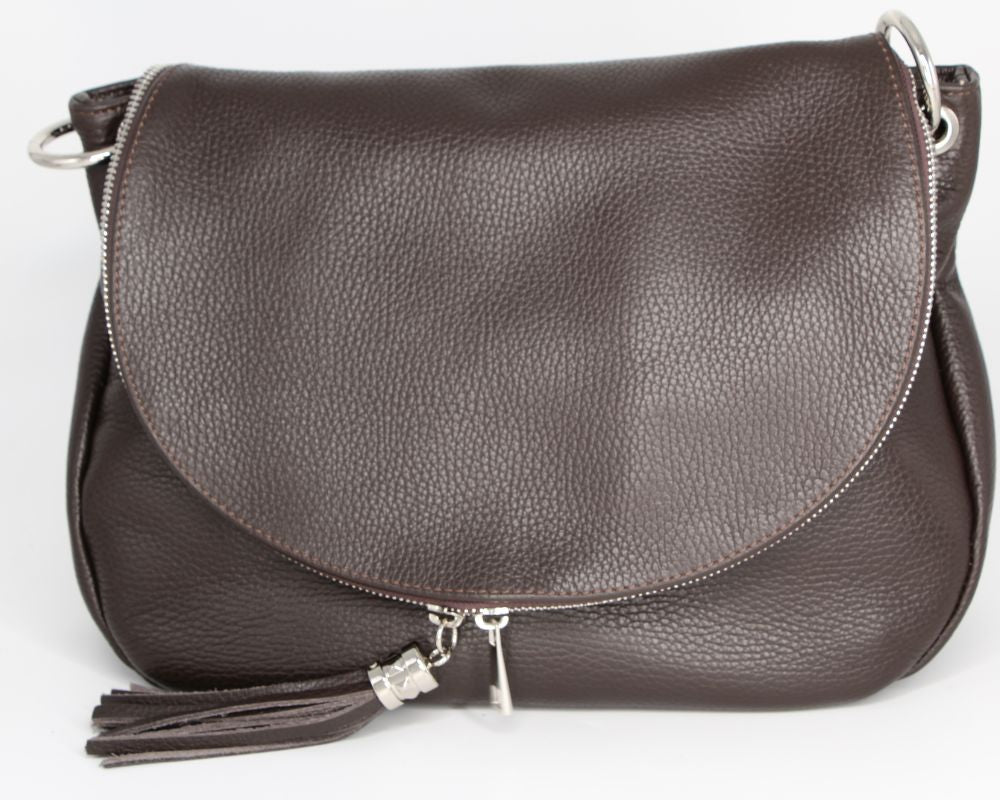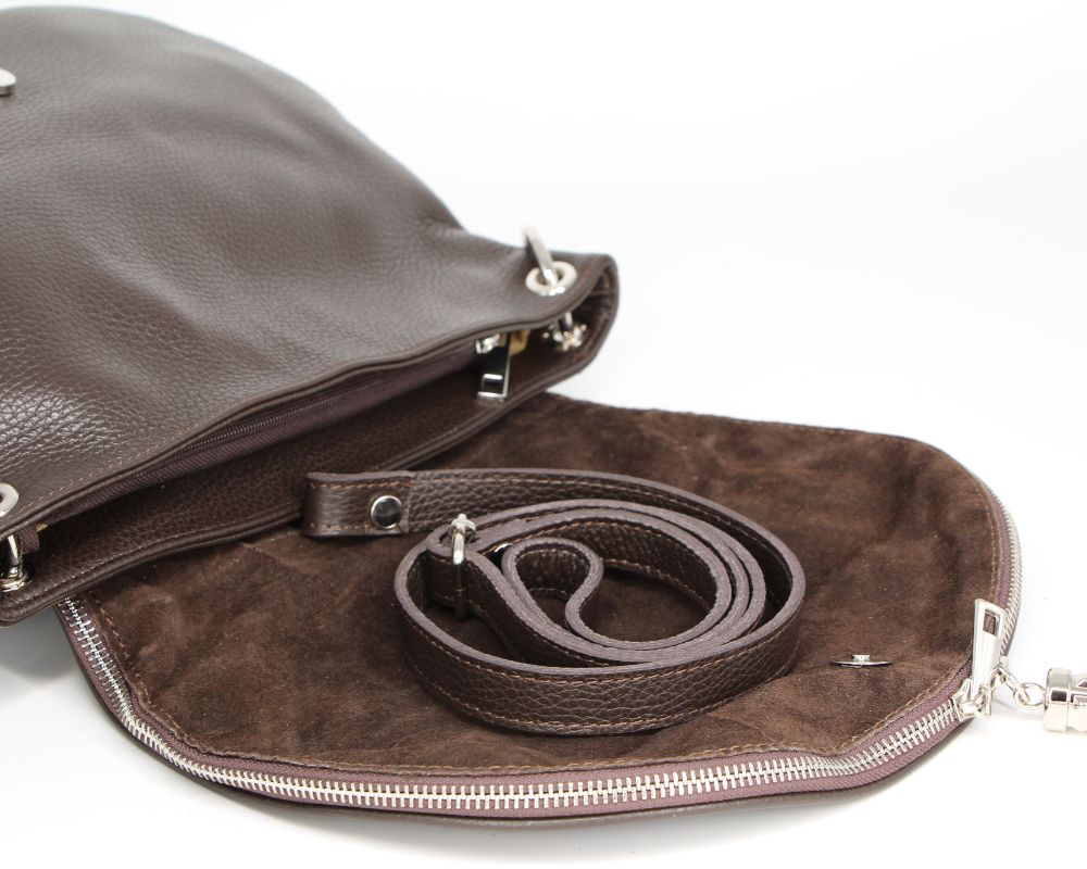 Crafted from genuine leather, the Fabucci Brown Leather Saddle Bag Susanna features a soft structure for comfortable wear. It offers a zippered back pocket, dual compartments, and an interior zip pocket for organized storage. The adjustable shoulder strap ensures a perfect fit. Dimensions are 34cm wide, 26cm high, and 11cm deep. Expertly made in Italy.