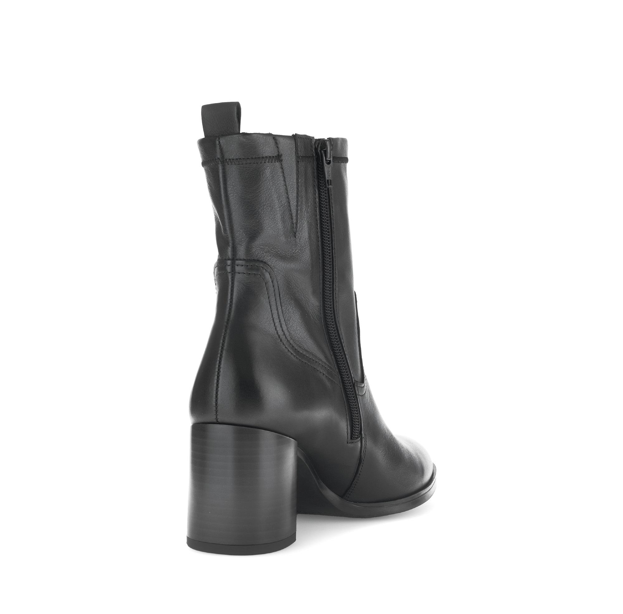 GABOR Black Leather High Block Heel Ankle Boot 95157