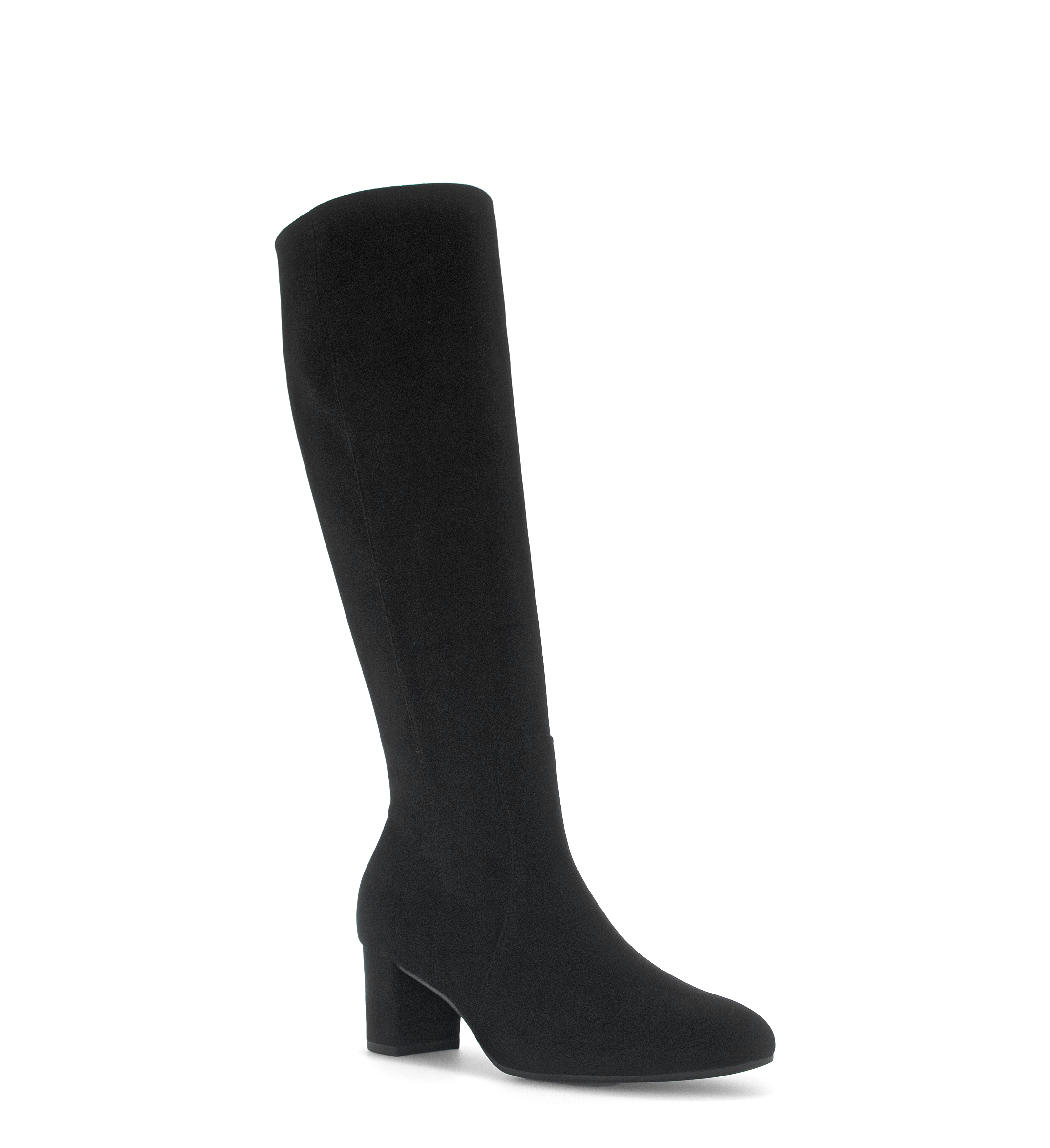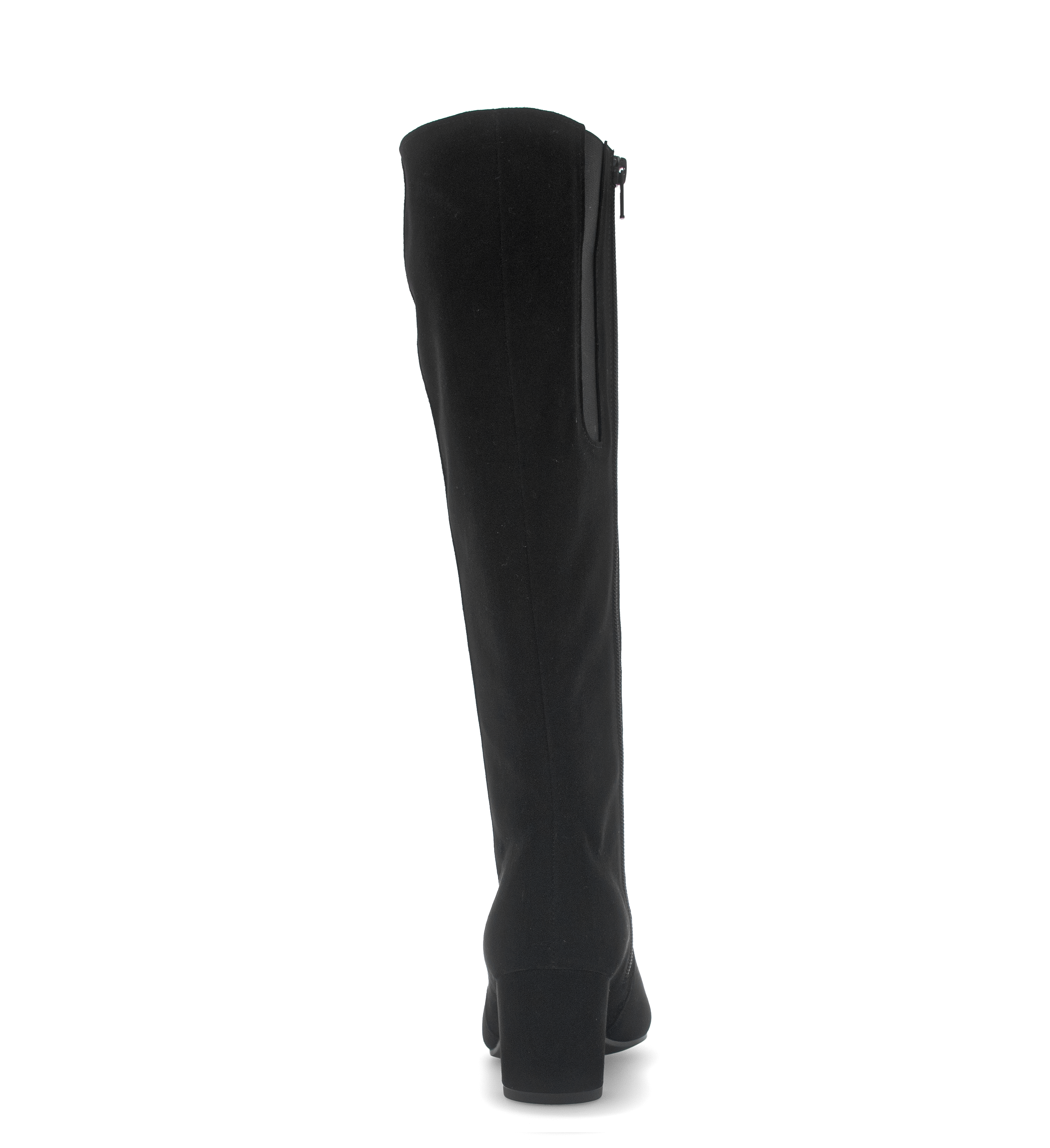This knee-high boot by Gabor features a full zip closure and a mid block heel, making it a versatile staple for the colder seasons. Crafted with black suede, it sits neatly on the calf for a comfortable fit. Perfect for the autumn and winter months.