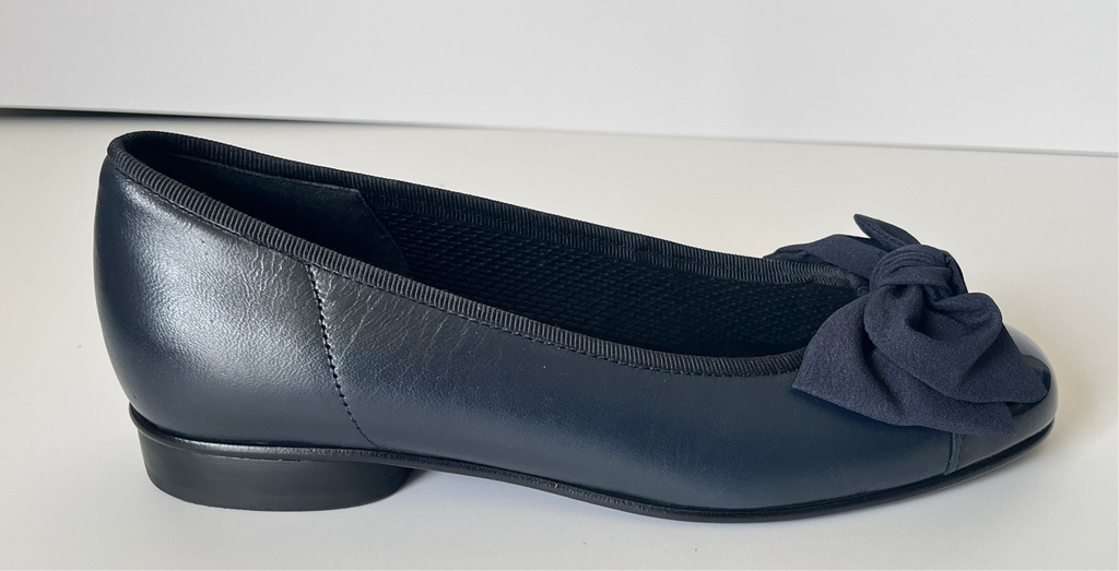 GABOR Navy Leather Ballerina Shoe with Bow Amy