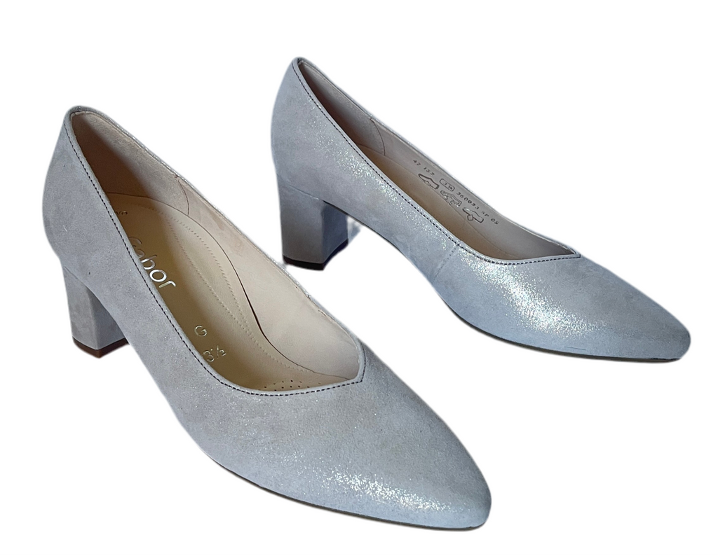 Gabor Silver Shimmer Block heel Court Shoe 15214