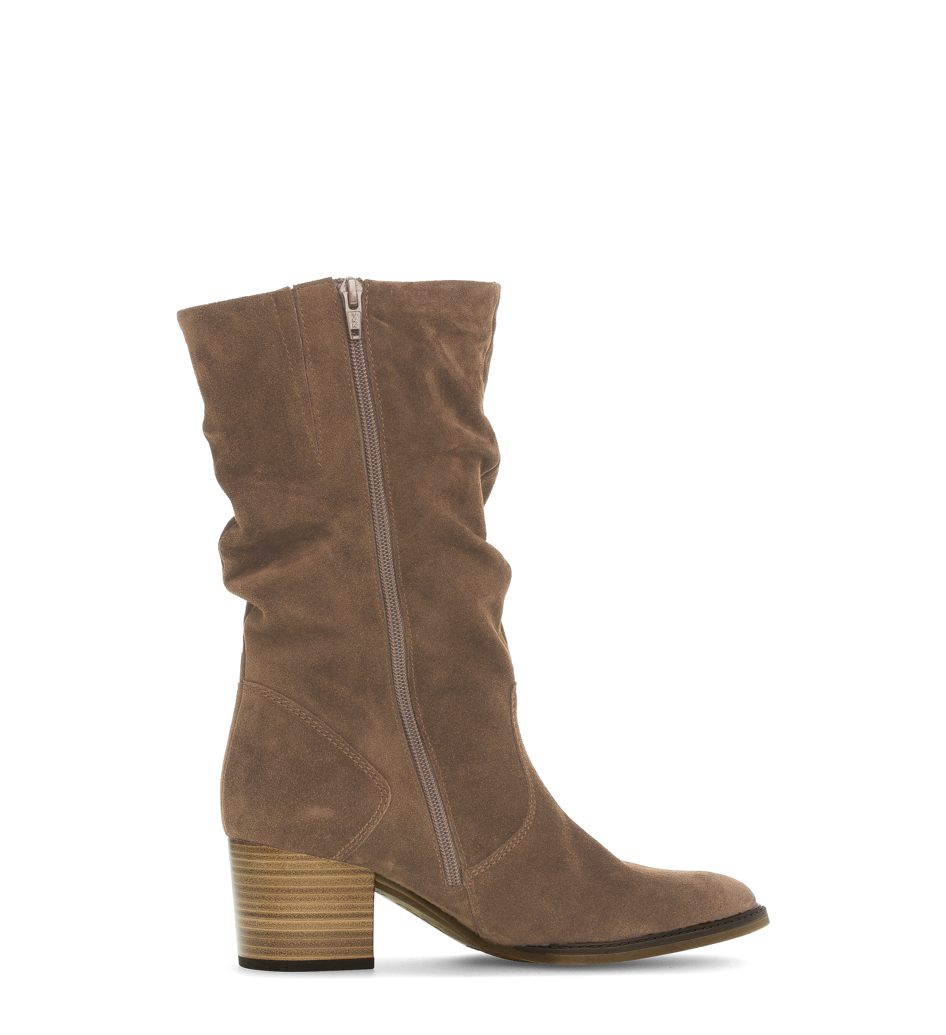Gabor Tan Suede Mid High Ruched Boot Upper :Suede Leather Lining: Leather & Textile
