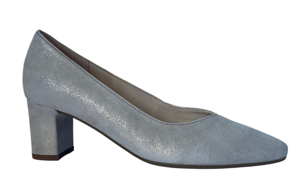 Gabor Silver Shimmer Block heel Court Shoe 15214