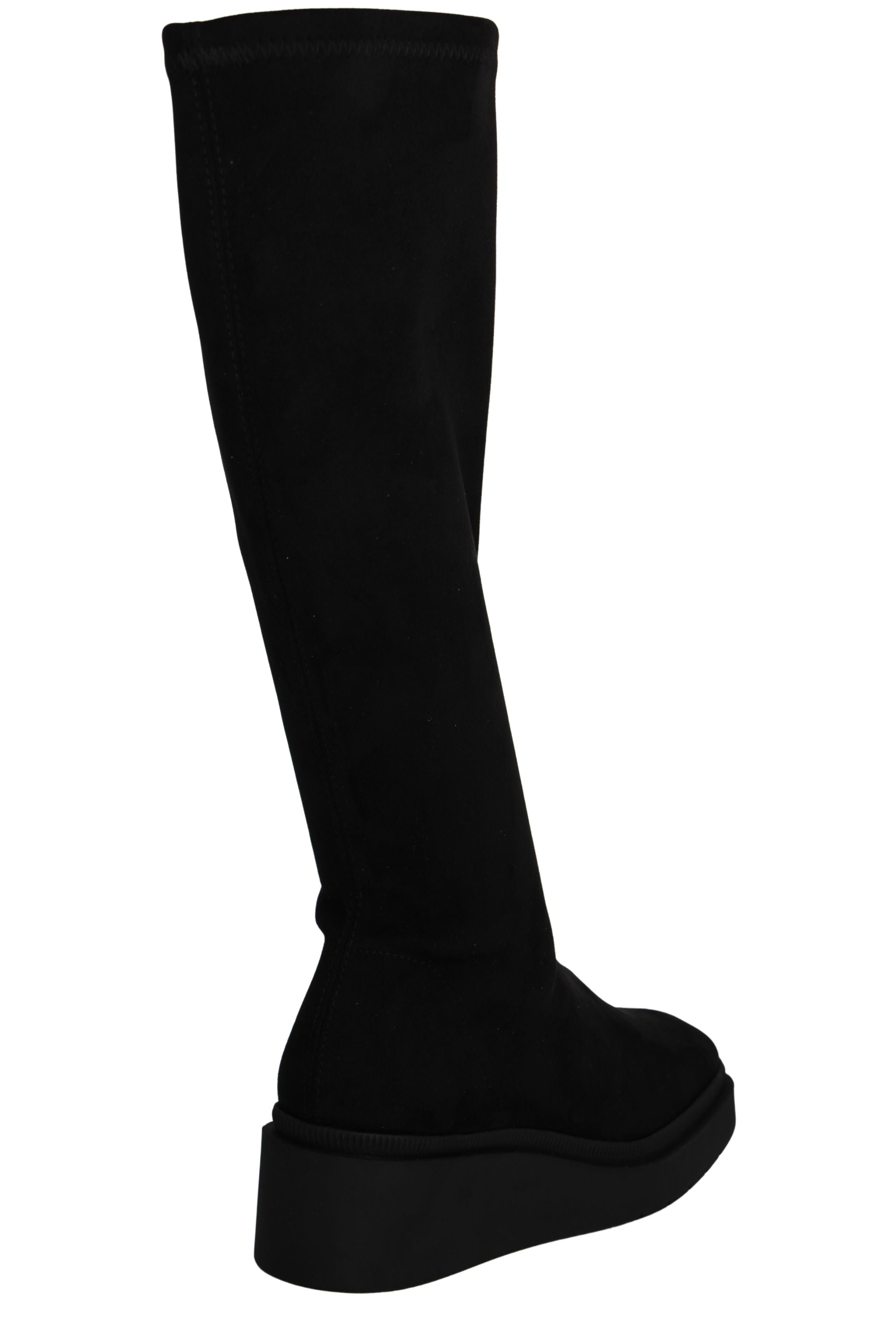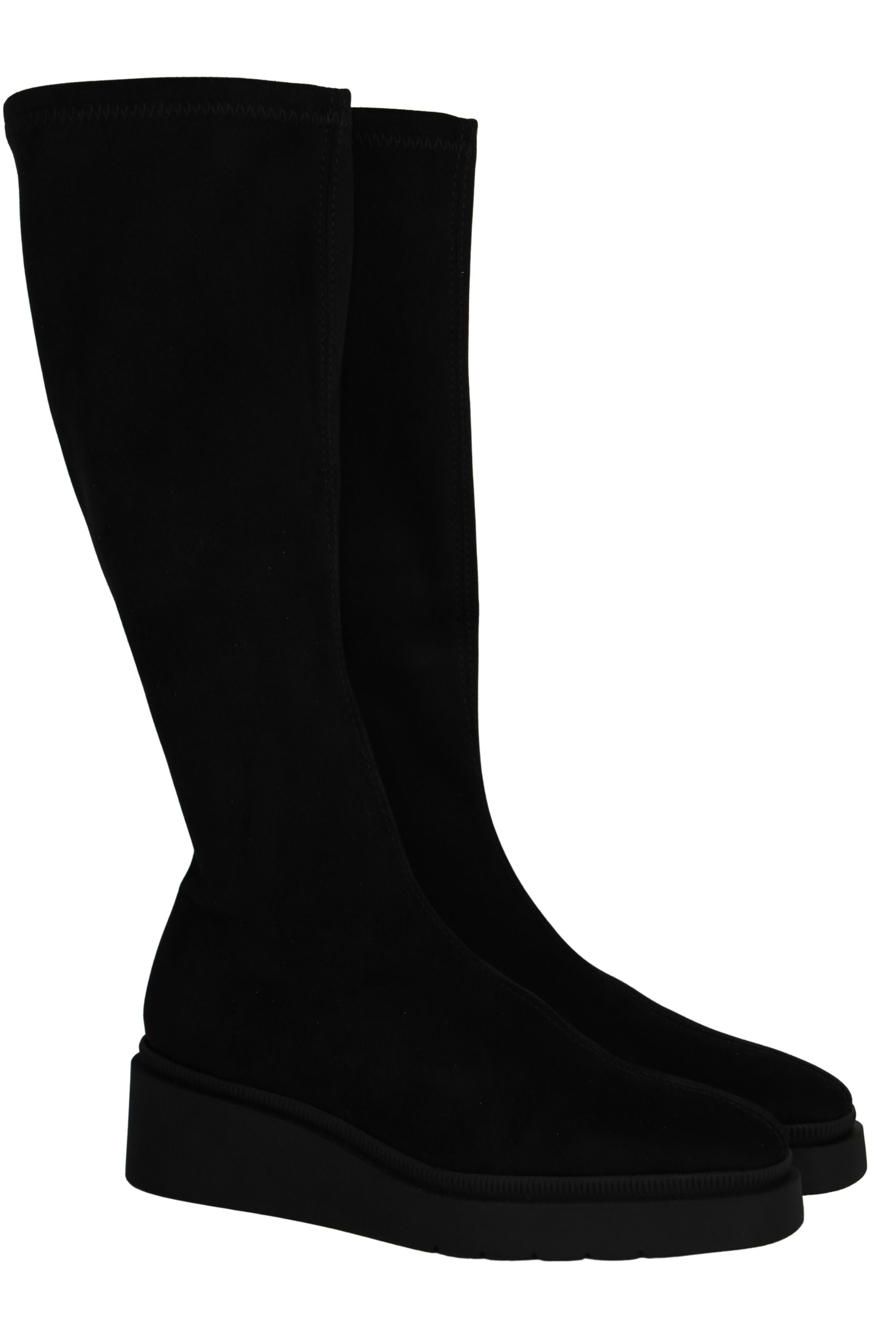 MISS ELASTIC Black Faux Suede Stretch Low Wedge Knee Boot