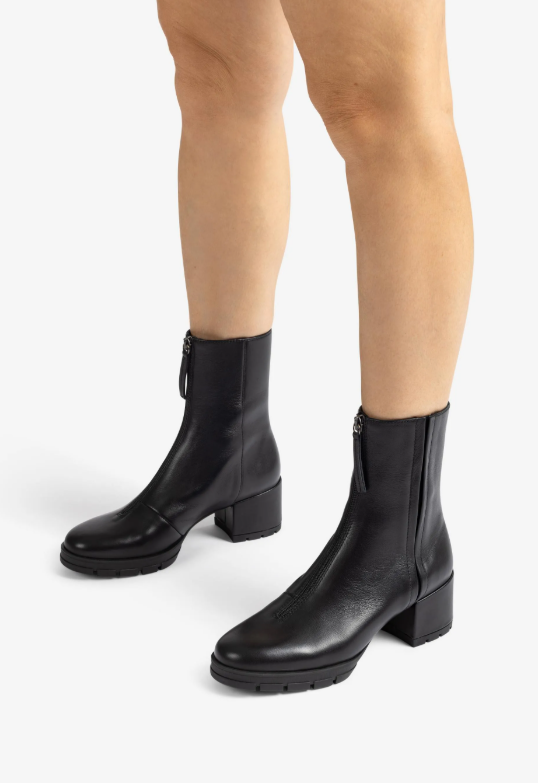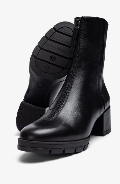 UNISA JECKO Black Leather Zip Up Ankle Boot Round toe ankle boot made in leather. Zip on the front and gusset on the side. Matching tone heel that is 6cm high and a 2cm platform. Light, flexible, non-slip rubber sole. Treat yourself to a pair and let nothing get in your way!