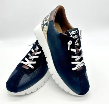 WONDERS Navy Leather Trainer ODISEI Upper : Leather Lining : Leather Sole: Manmade Height :35mm. Removable insole.