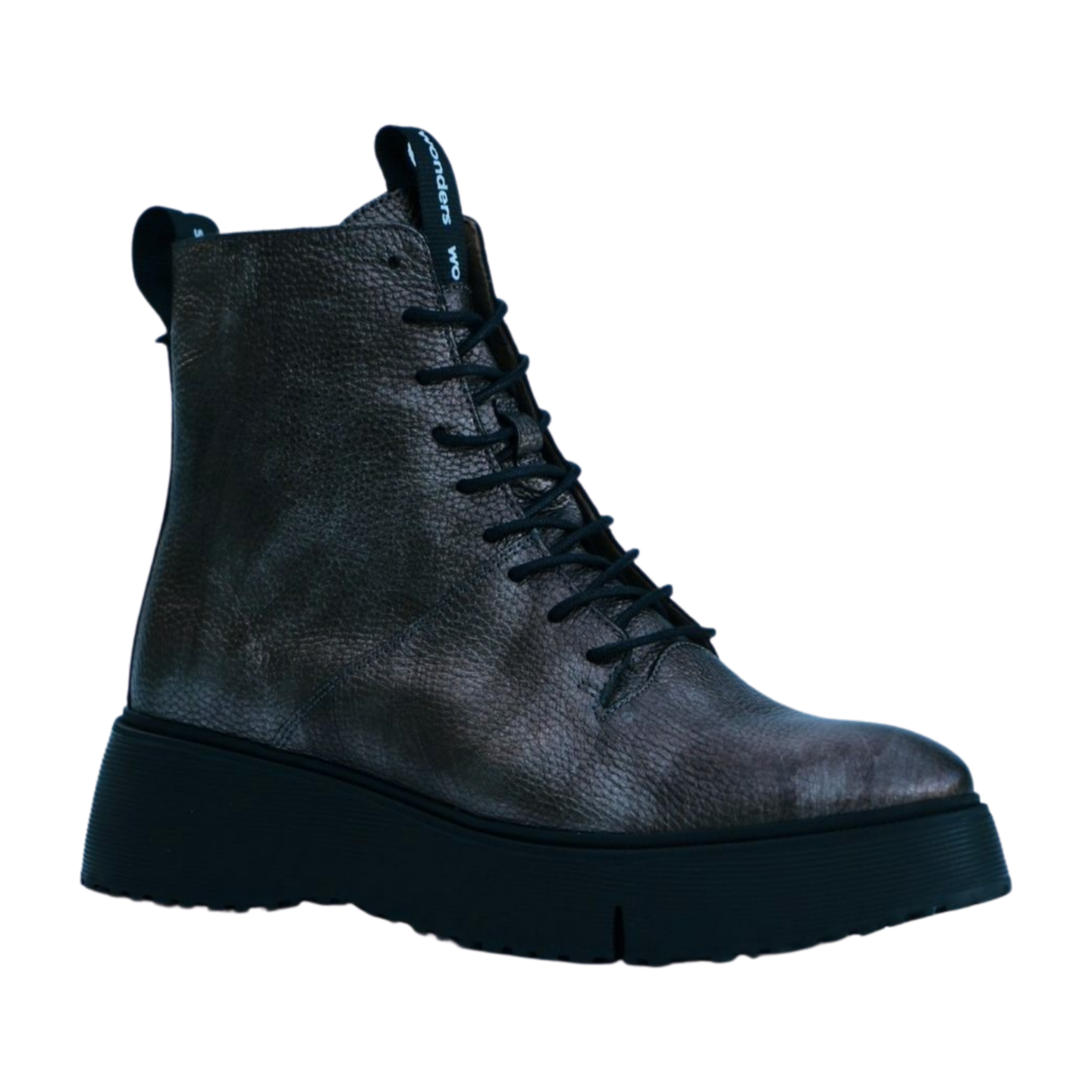 WONDERS Pewter Leather Lace Up Ankle Boot