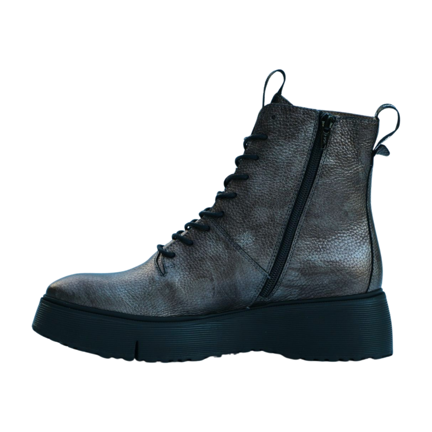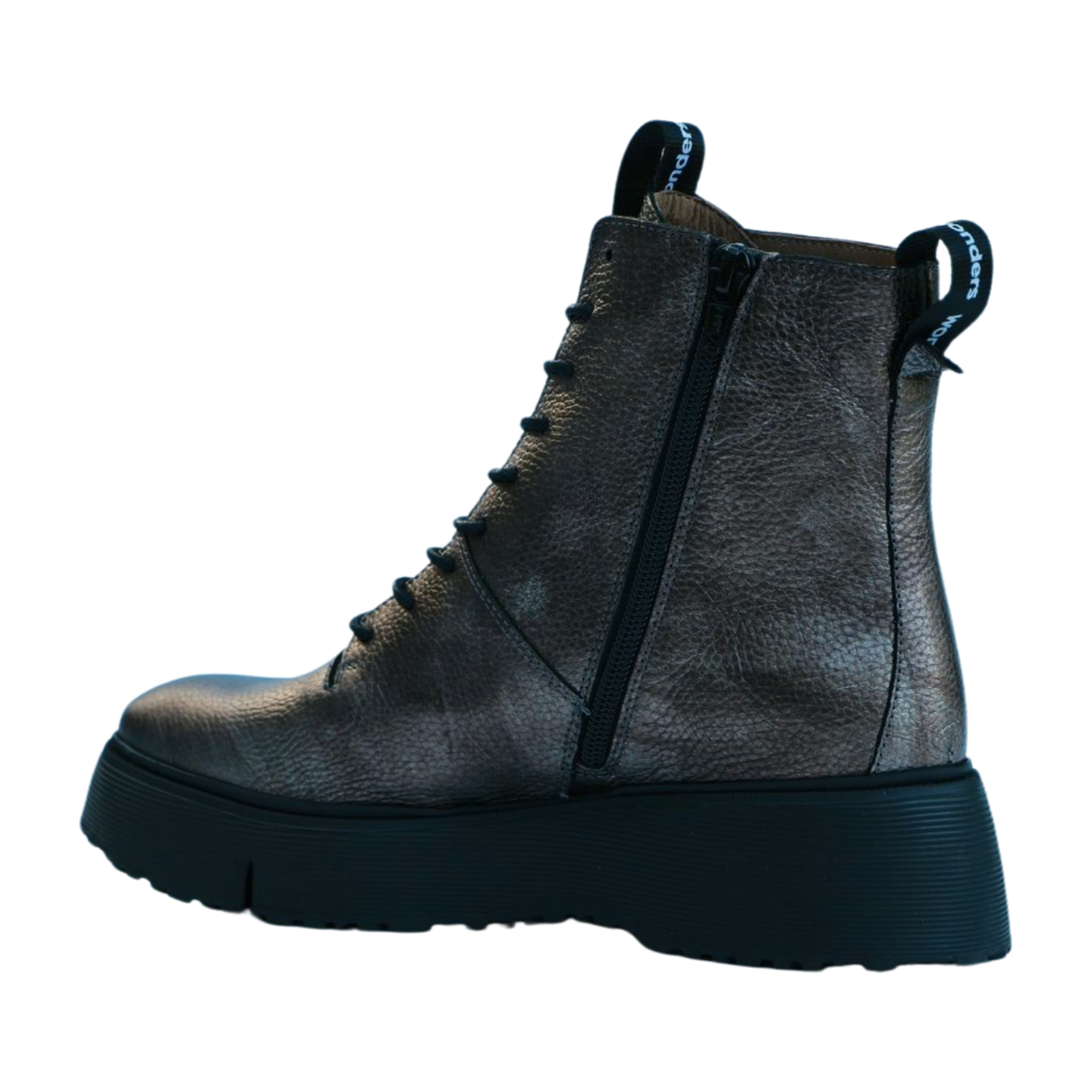 WONDERS Pewter Leather Lace Up Ankle Boot Style : A-9350 Upper: Leather Lining: Leather Sole : Manmade Height :4.5cm