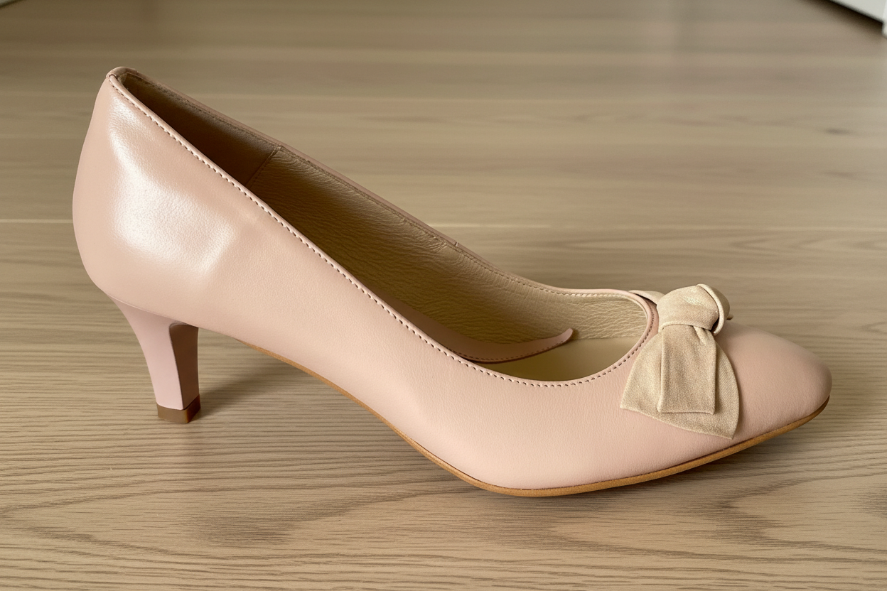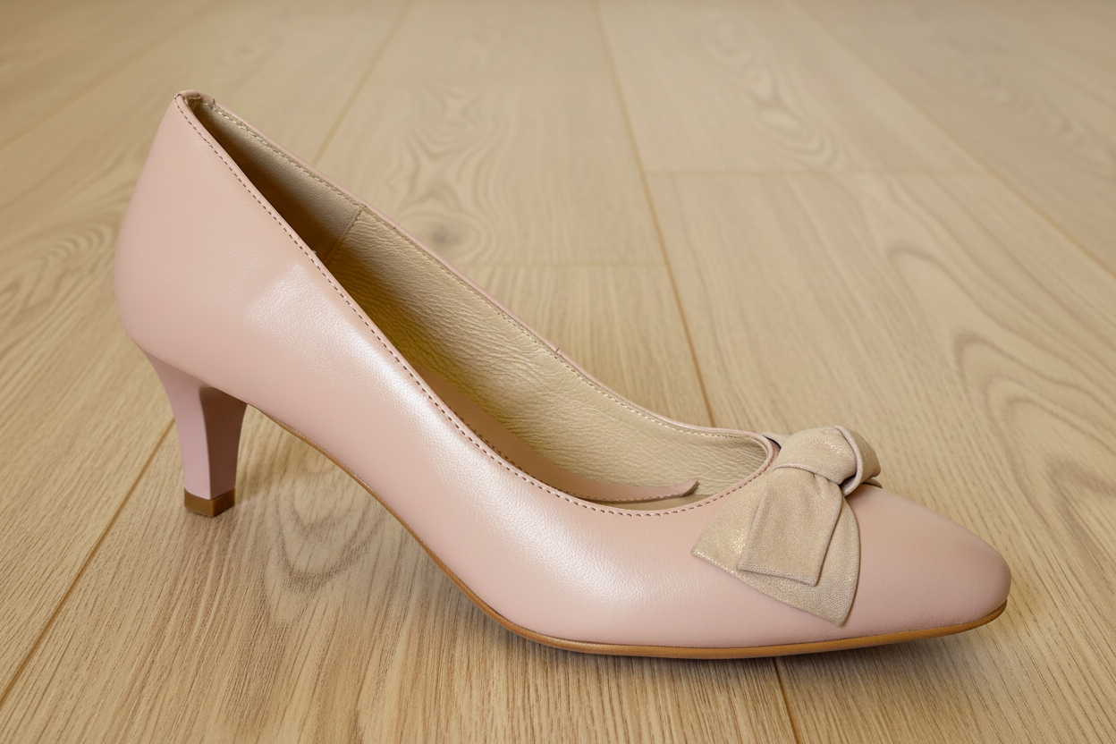 Fabucci Pale Pink Mid Heel Shoe with Gold Bow