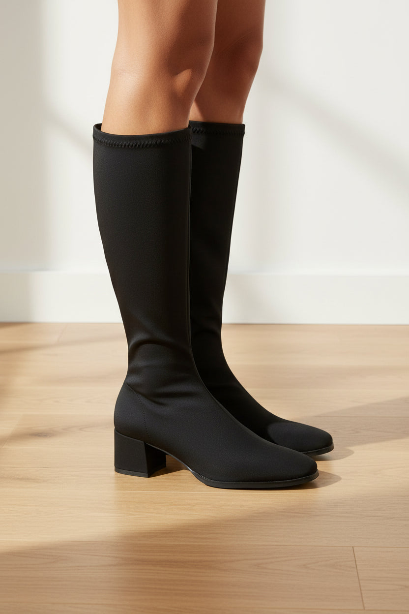 MISS ELASTIC Black Stretch Knee High Boot 78331