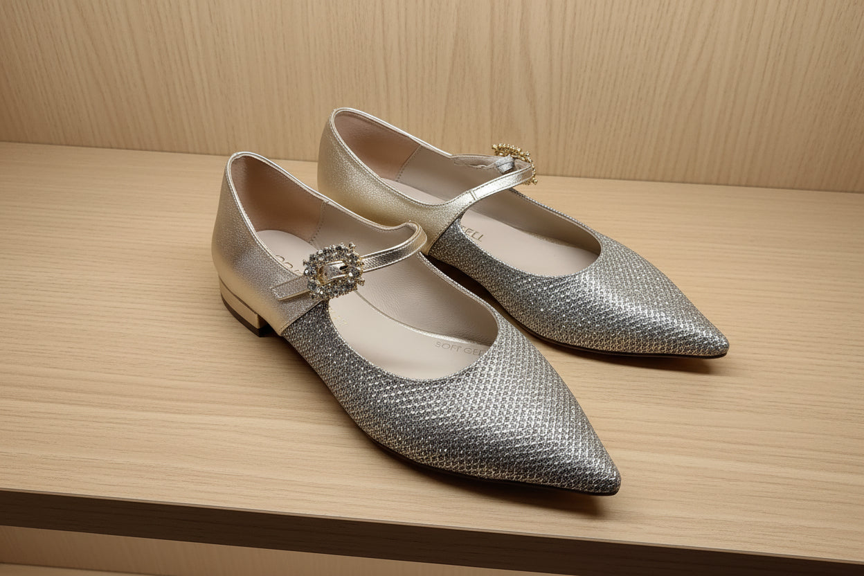 MARIAN Gold Shimmer Mary Jane Ballet Flat Shoe