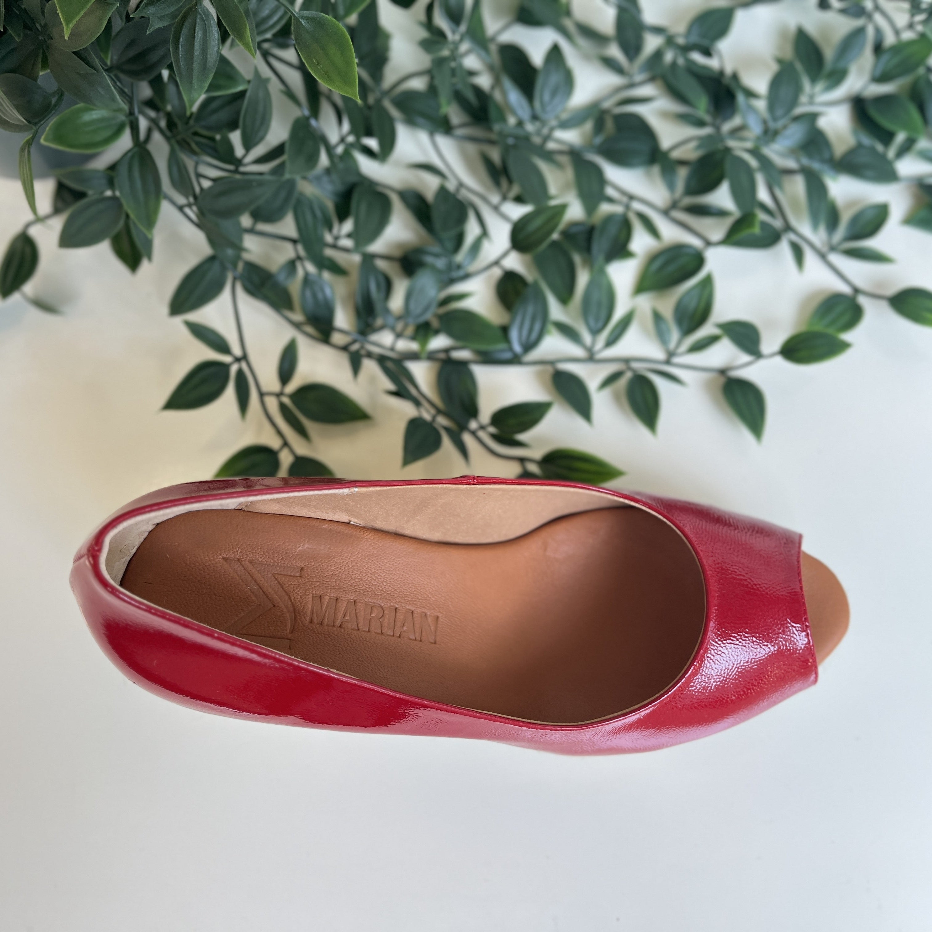 MARIAN Red Patent Peep Toe Wedge Espadrille Shoe