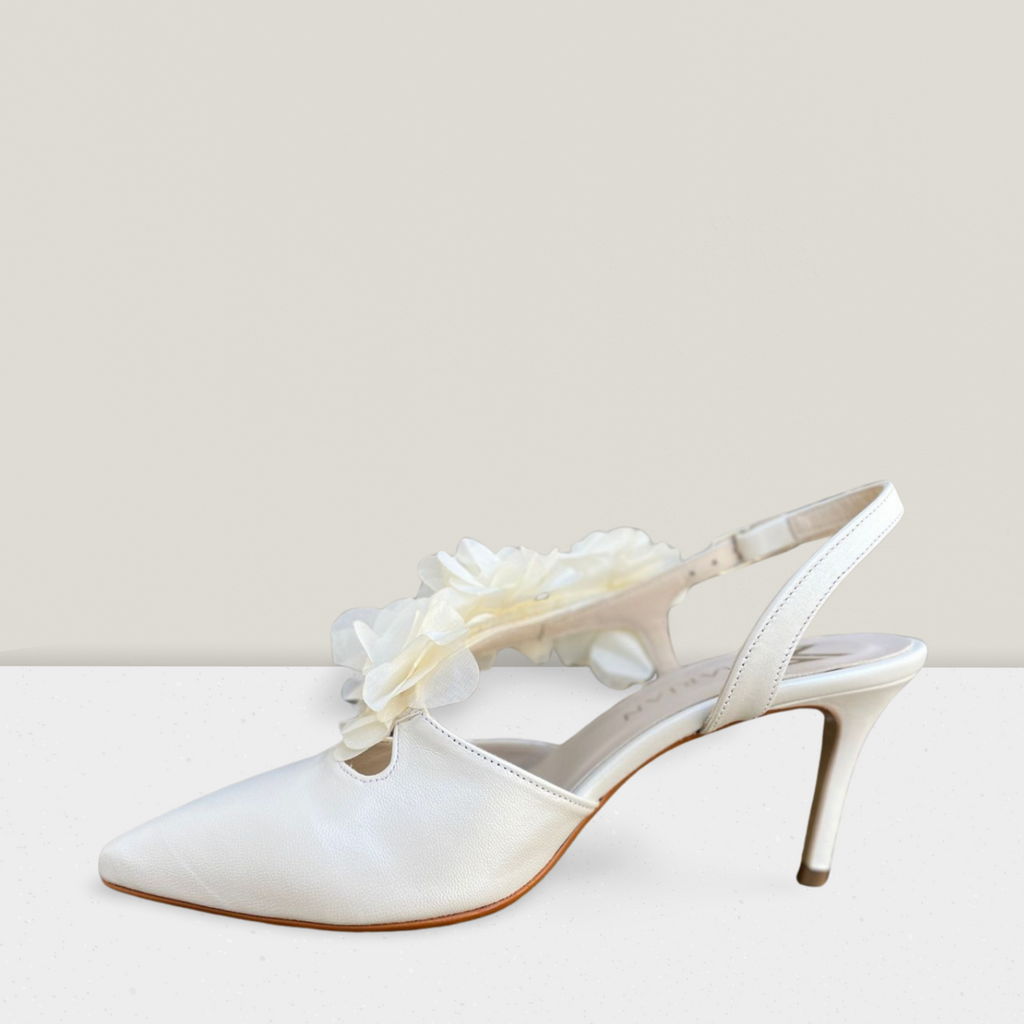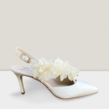 Looking for a fabulous off white mid heel  evening/ occasion shoe ? Look no further than these delectable pale pink  leather shoes. With their mid heel , diamante strap they are guaranteed to add that wow factor to any outfit,