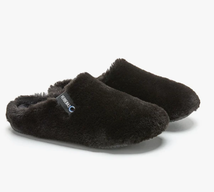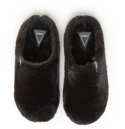 VERBENAS Black Faux Fur Slipper YORK  Made with 100% faux fur upper, 100% faux fur lining and sole and 100% rubber sole. Made in Spain. The soft effect fur on the outside and the fur lining on the inside stand out. Our York collection is inspired by the classic clogs, brought to the warmth and comfort of the home. Easy to wear and incredibly comfortable, York slippers are the perfect blend of warmth and relaxation. With them, every step is a journey into the heart of comfort, making every moment at home special.