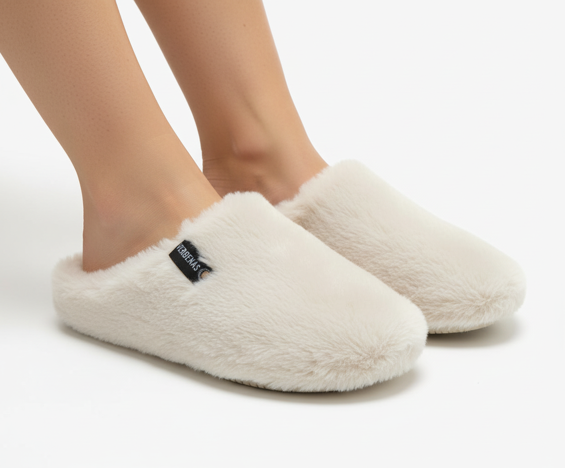 VERBENAS Cream Fur Slipper YORK  Made with 100% faux fur upper, 100% faux fur lining and sole and 100% rubber sole. Made in Spain. The soft effect fur on the outside and the fur lining on the inside stand out. Our York collection is inspired by the classic clogs, brought to the warmth and comfort of the home. Easy to wear and incredibly comfortable, York slippers are the perfect blend of warmth and relaxation. With them, every step is a journey into the heart of comfort, making every moment at home special.
