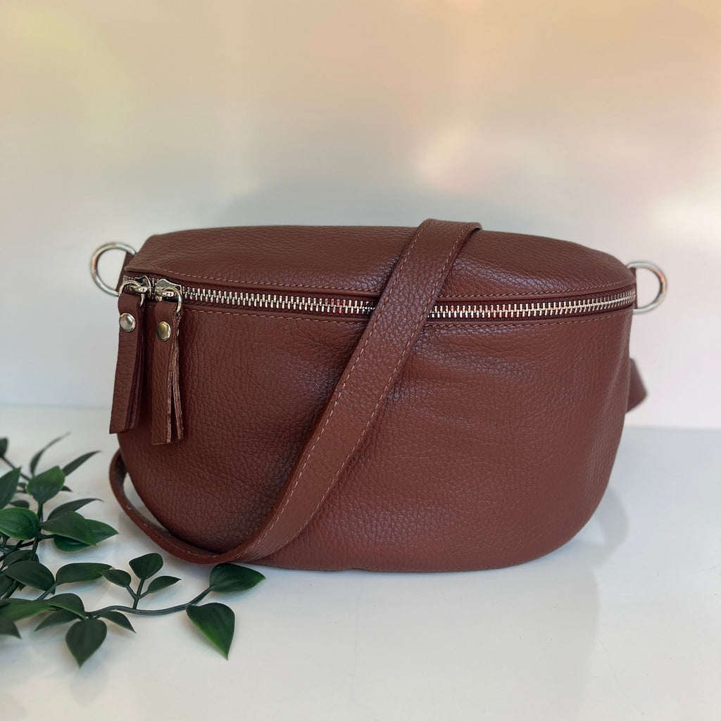 Fabucci Chocolate Brown Leather Crossbody Bag