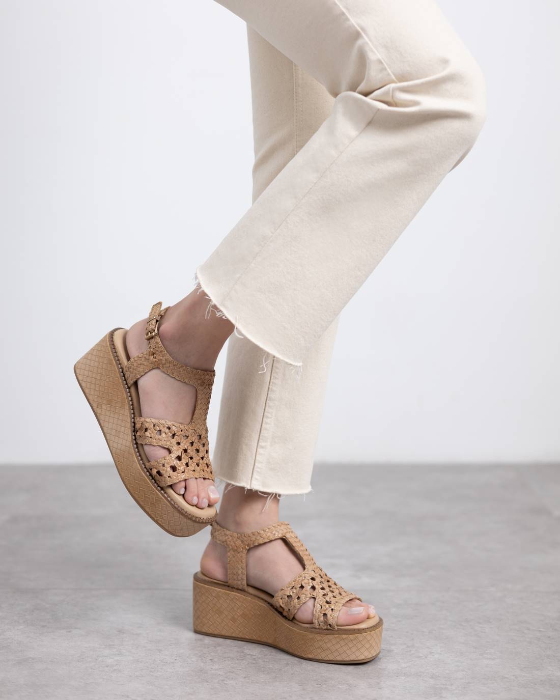 CARMELA Camel Leather  Wedge Sandal