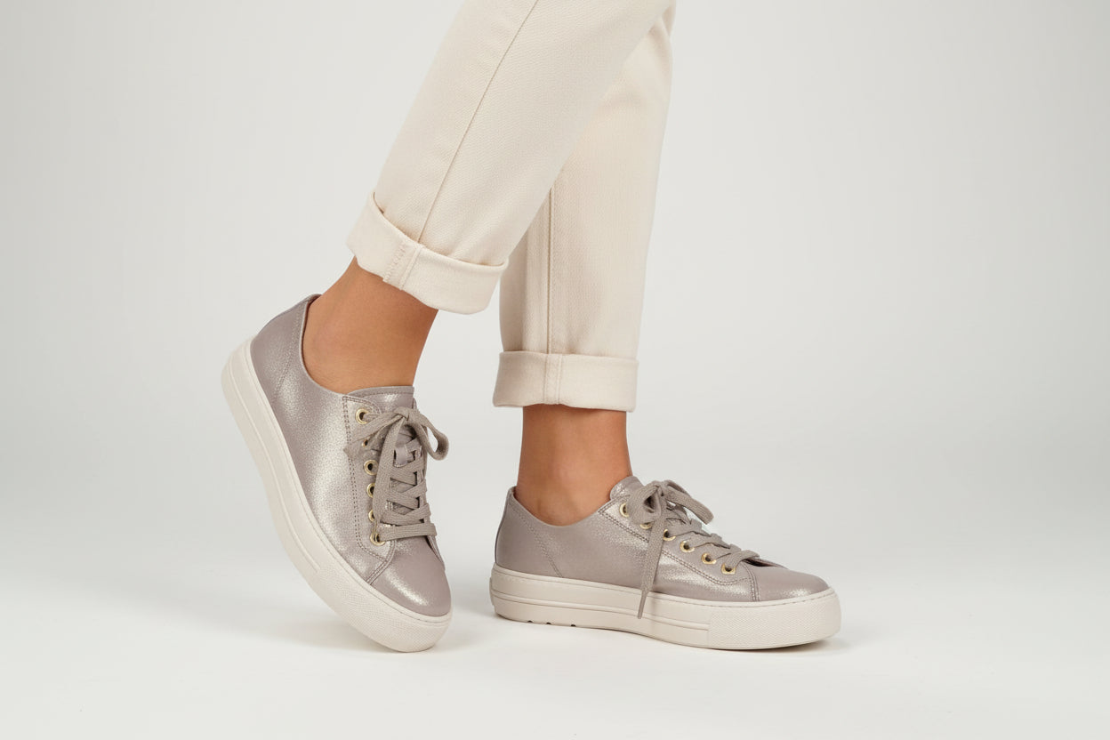 PAUL GREEN Taupe Metallic Leather Trainer 4790
