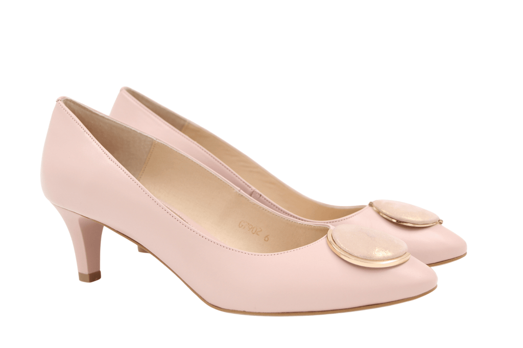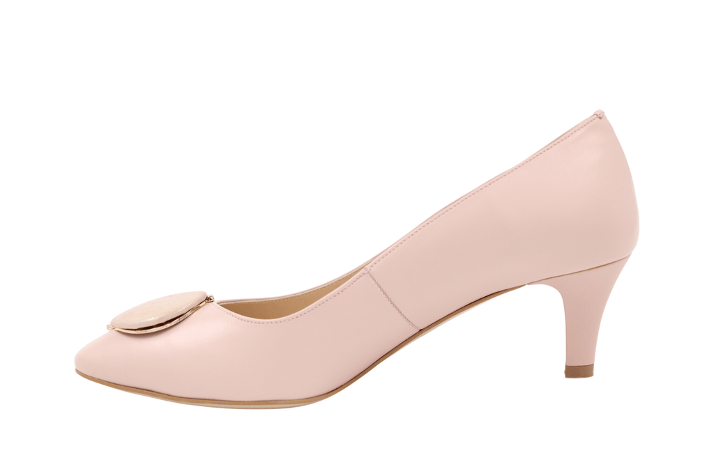 • EMIS Pale Pink  mid heel shoe with Button detail