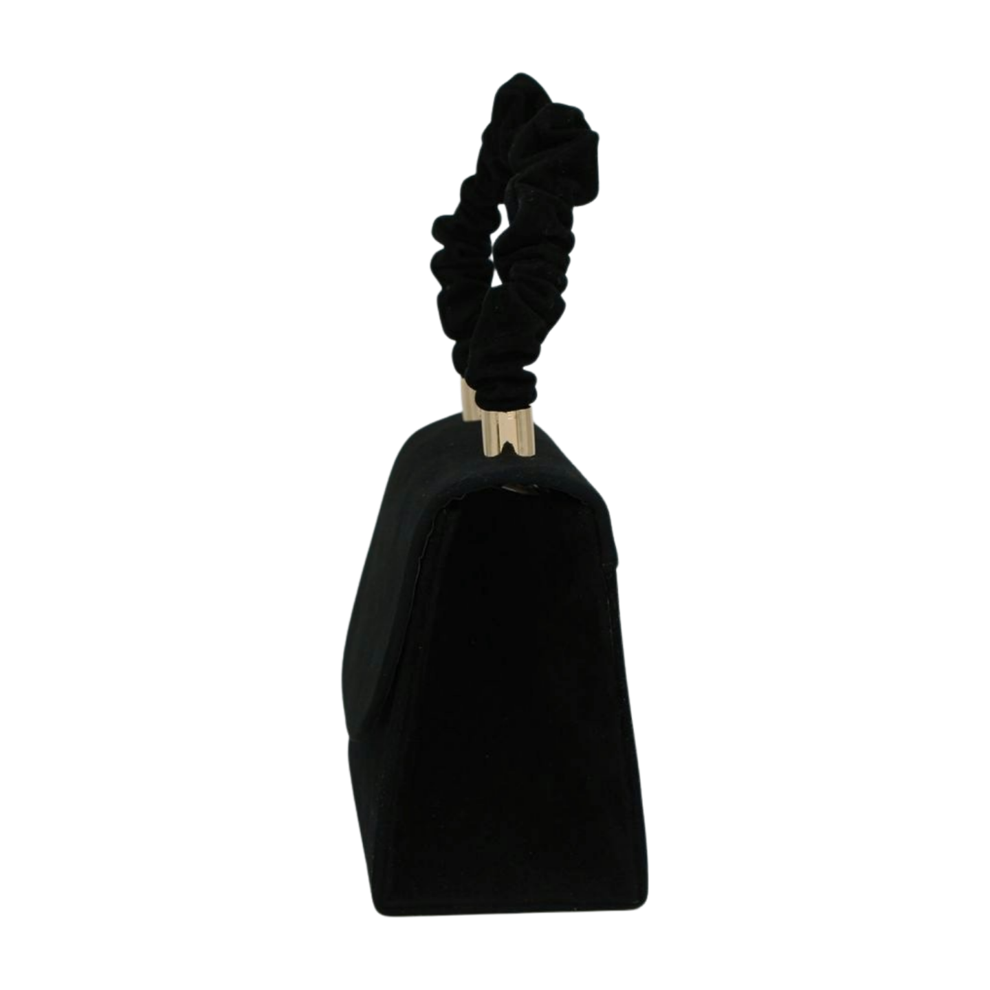 FABUCCI Black Suede Handbag .It comes with a detachable chain strap that can be easily tucked away when not in use Exterior: Suede Leather  Interior : Fabric Dimensions : l:17 W: 14 D: 8cm
