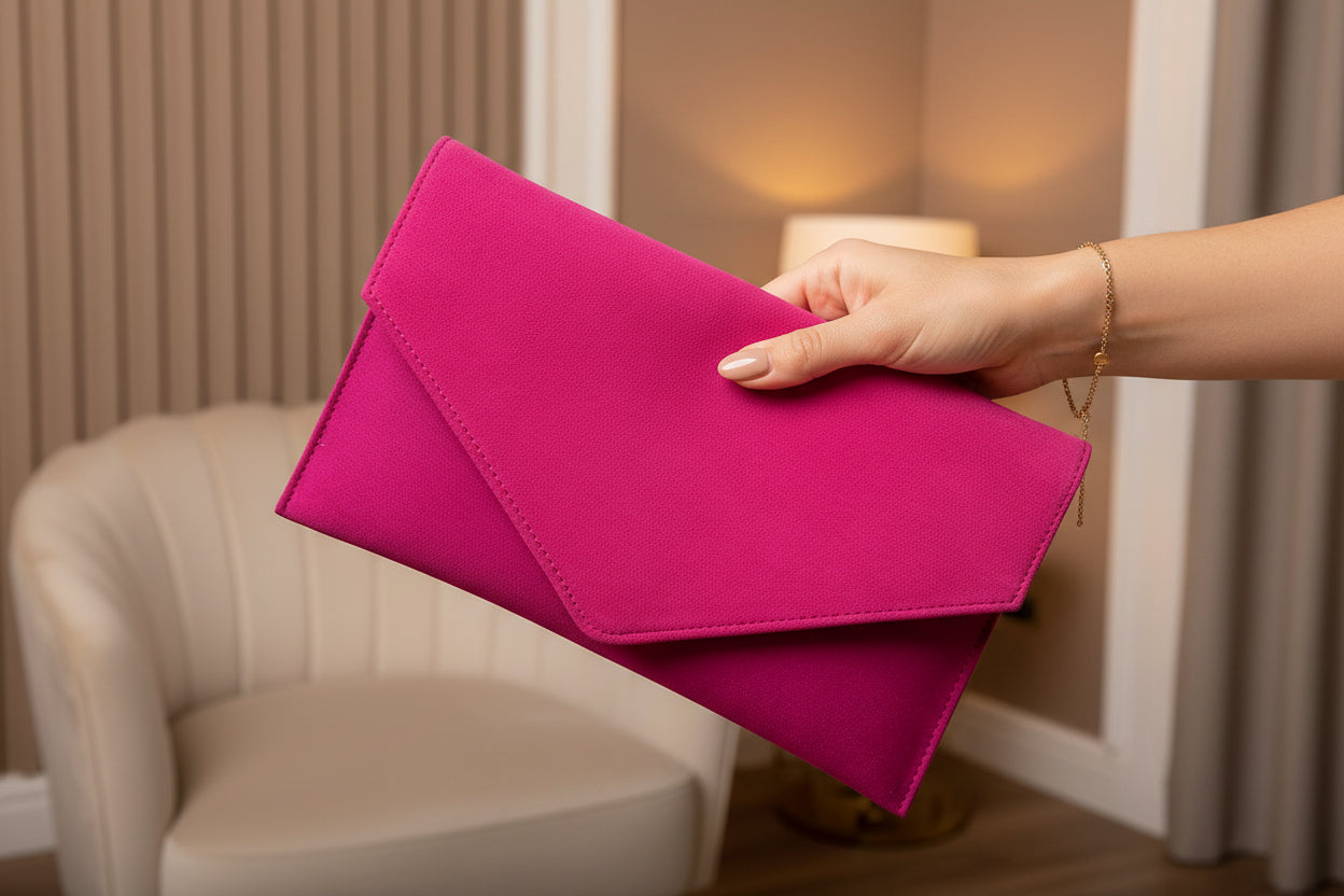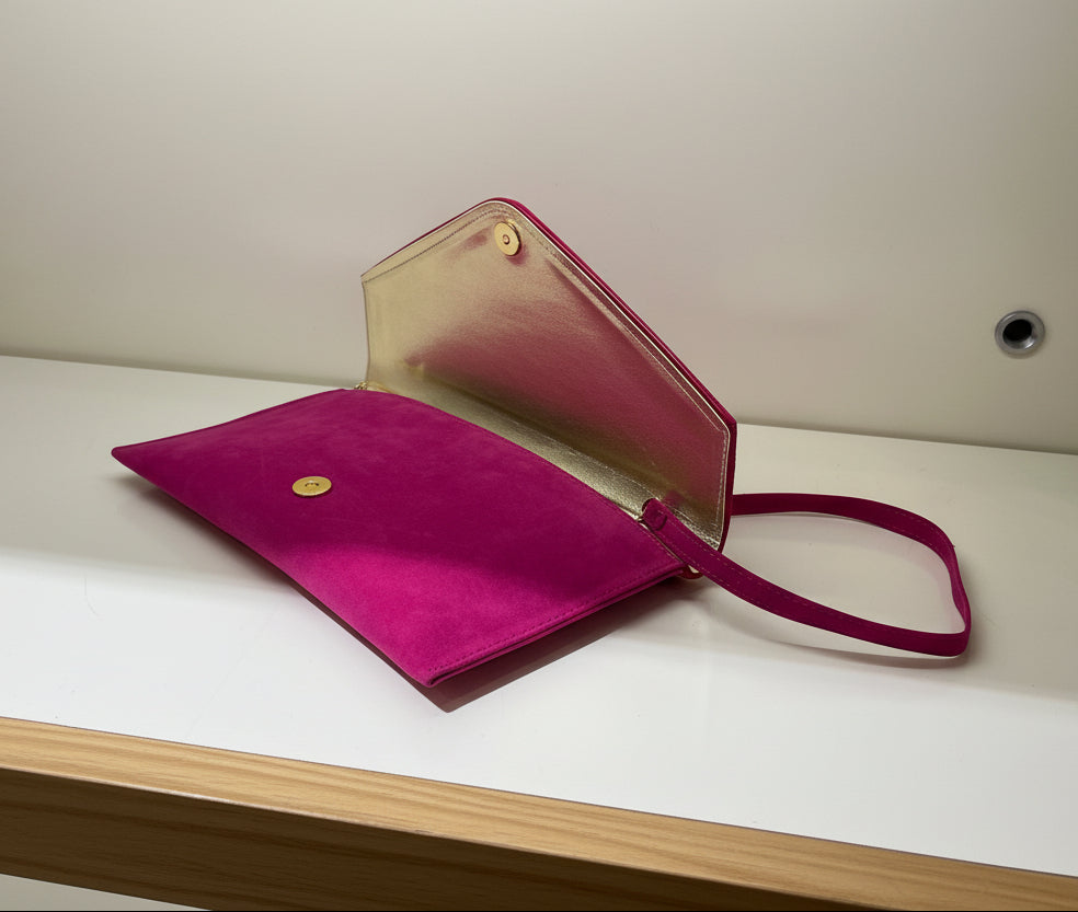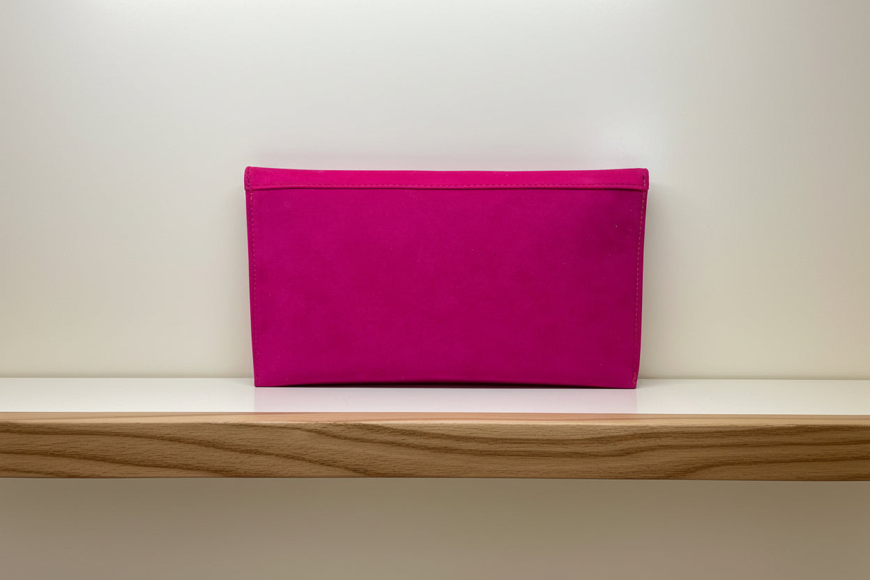 FABUCCI Fuchsia Pink Suede Envelope Clutch Bag
