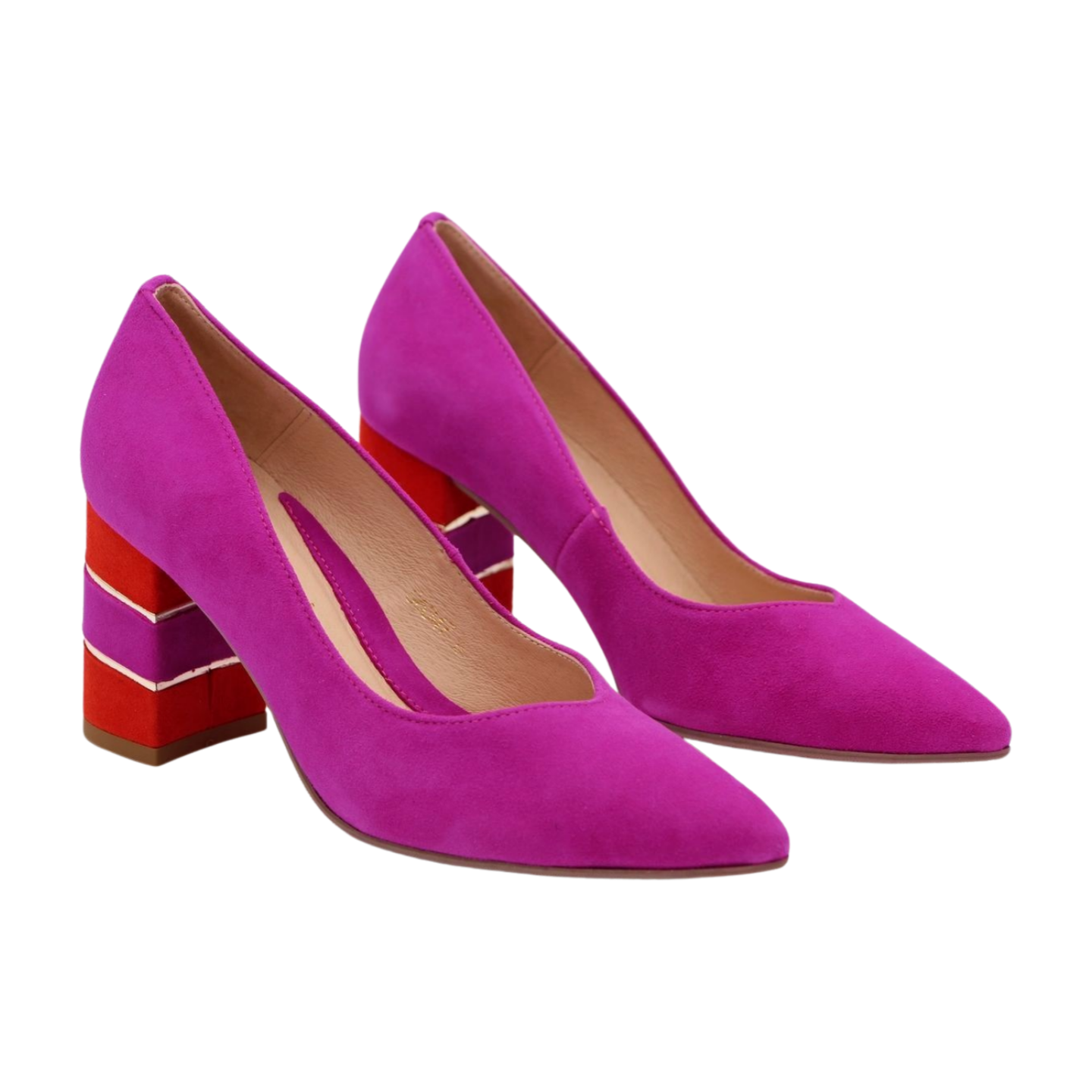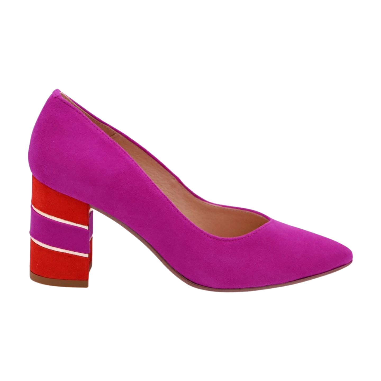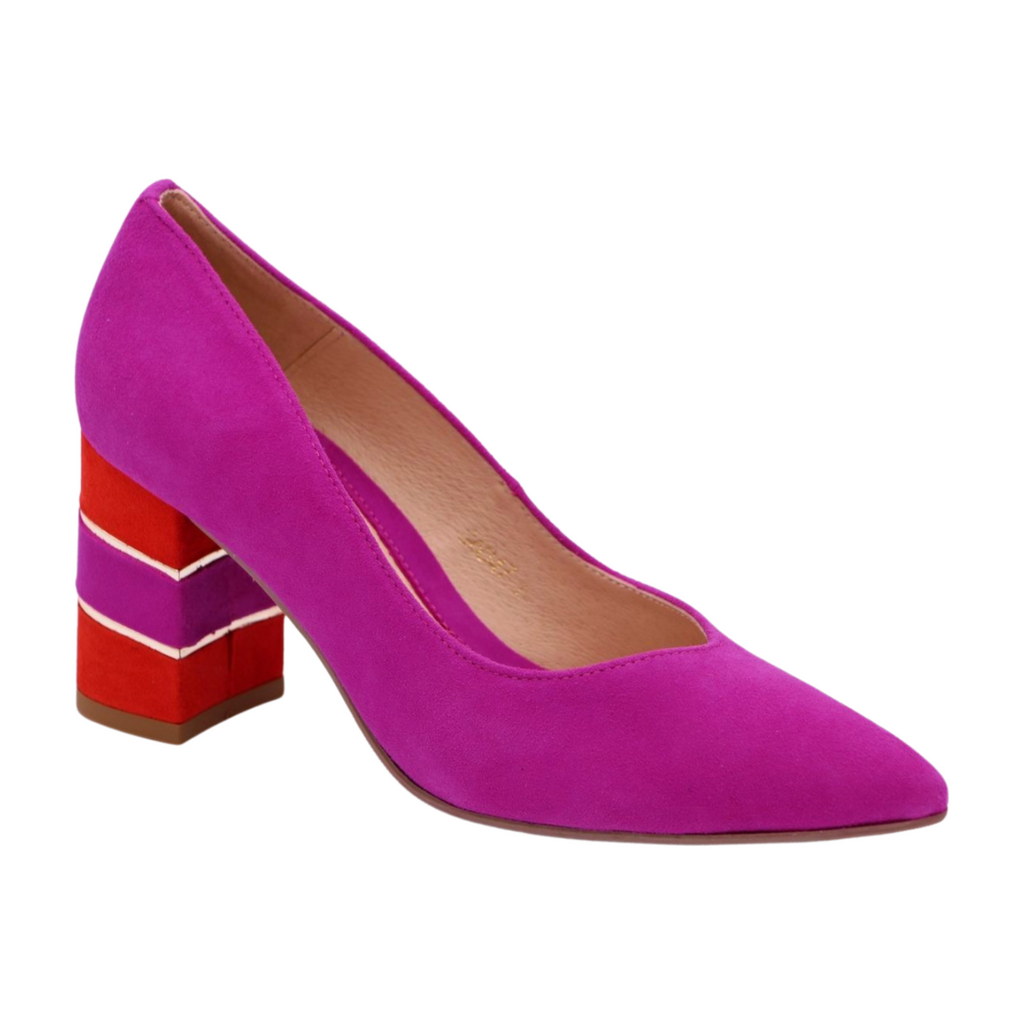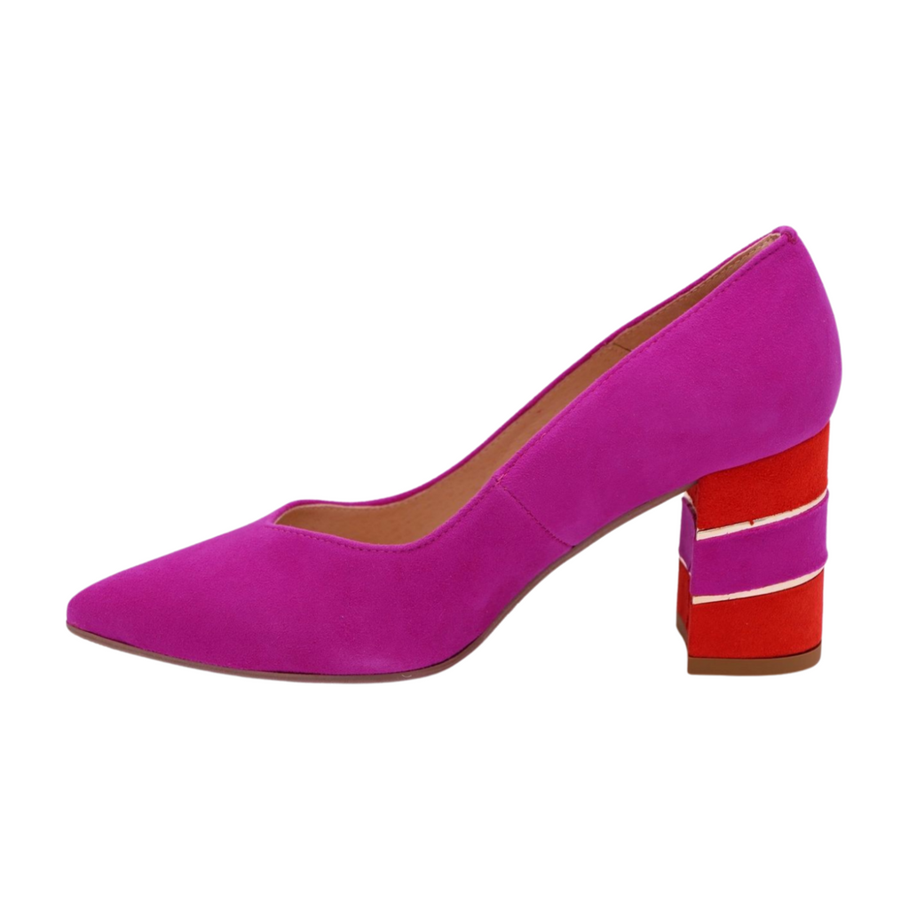 This sophisticated court shoe pairs a luxurious pink suede upper with a stable 7.5 cm block heel, ideal for all-day wear. Complementary orange and gold accents add contemporary flair to the classic silhouette, while the leather lining ensures breathability and durability. The manmade sole provides reliable grip and longevity. Designed to fit true to size, it seamlessly transitions from office to evening occasions.