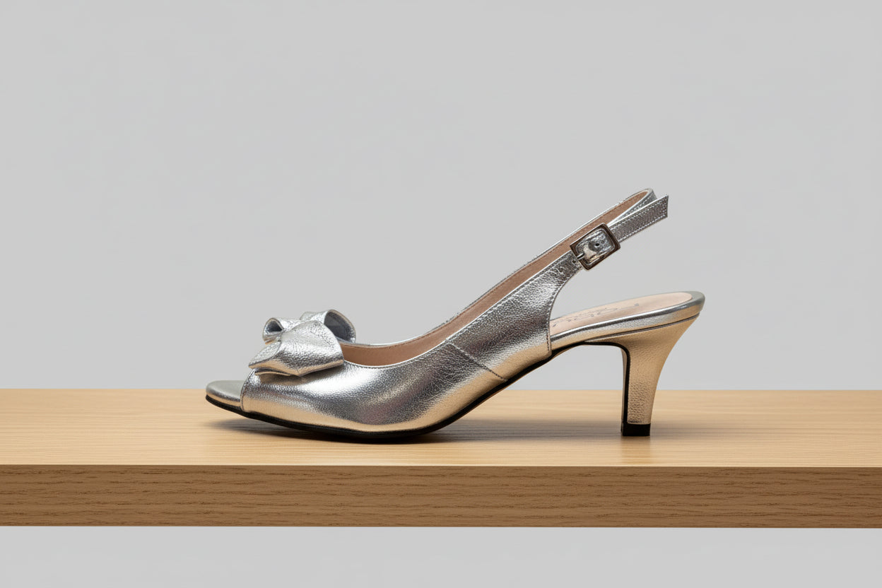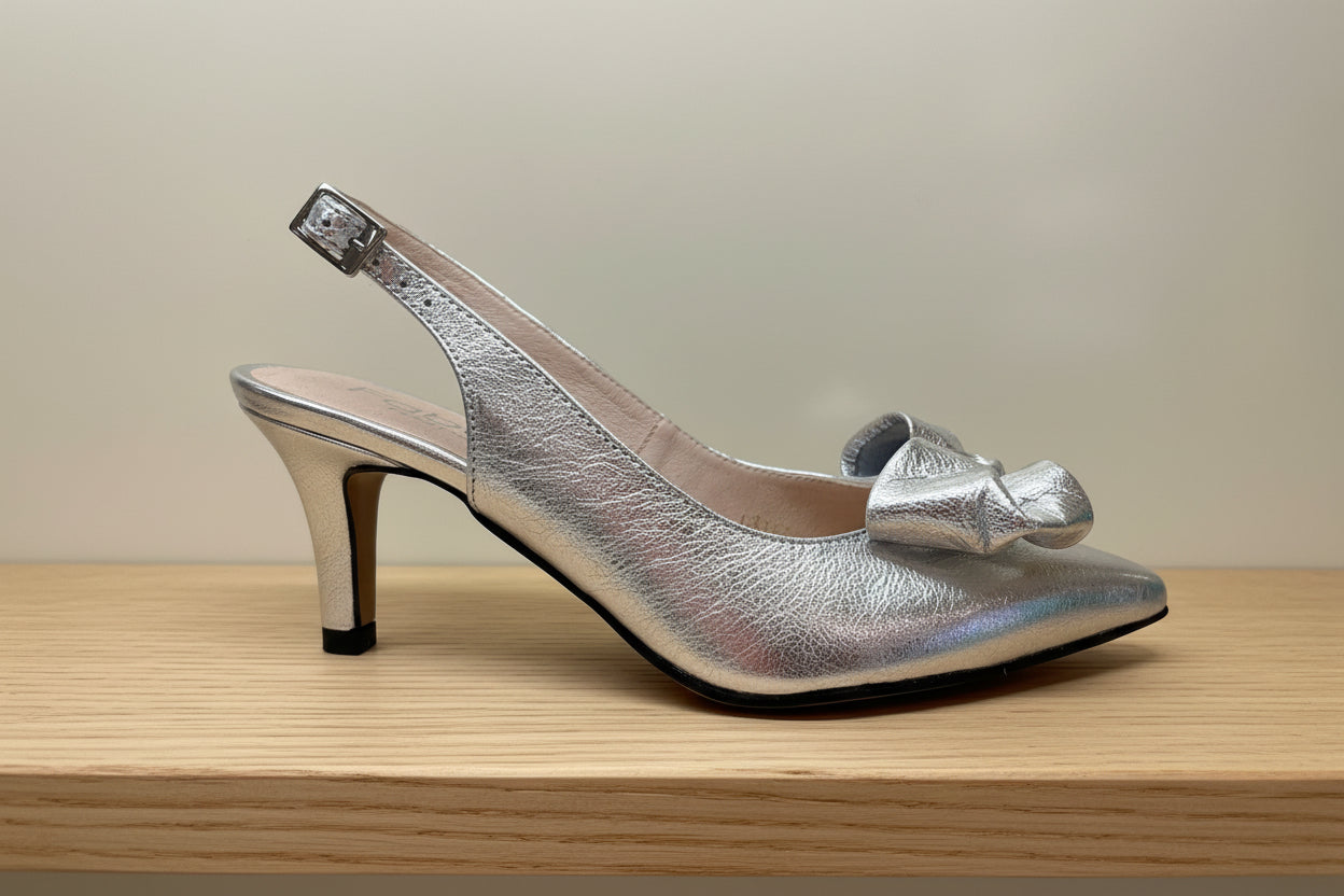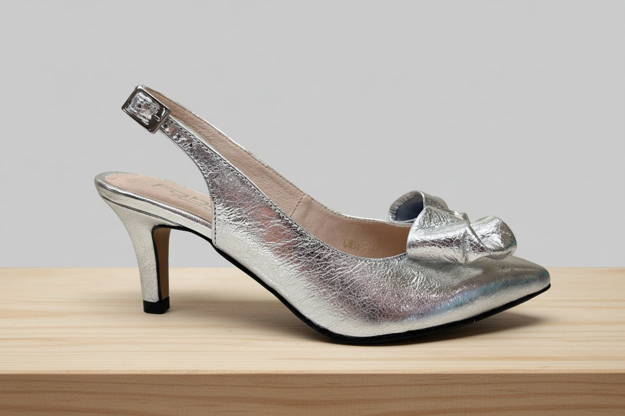 FABUCCI Silver Leather Bow Sling back Shoe