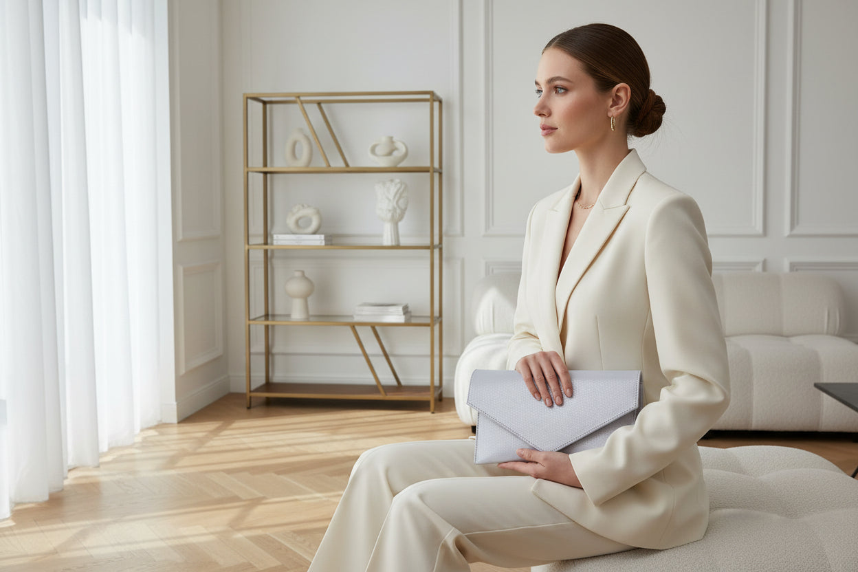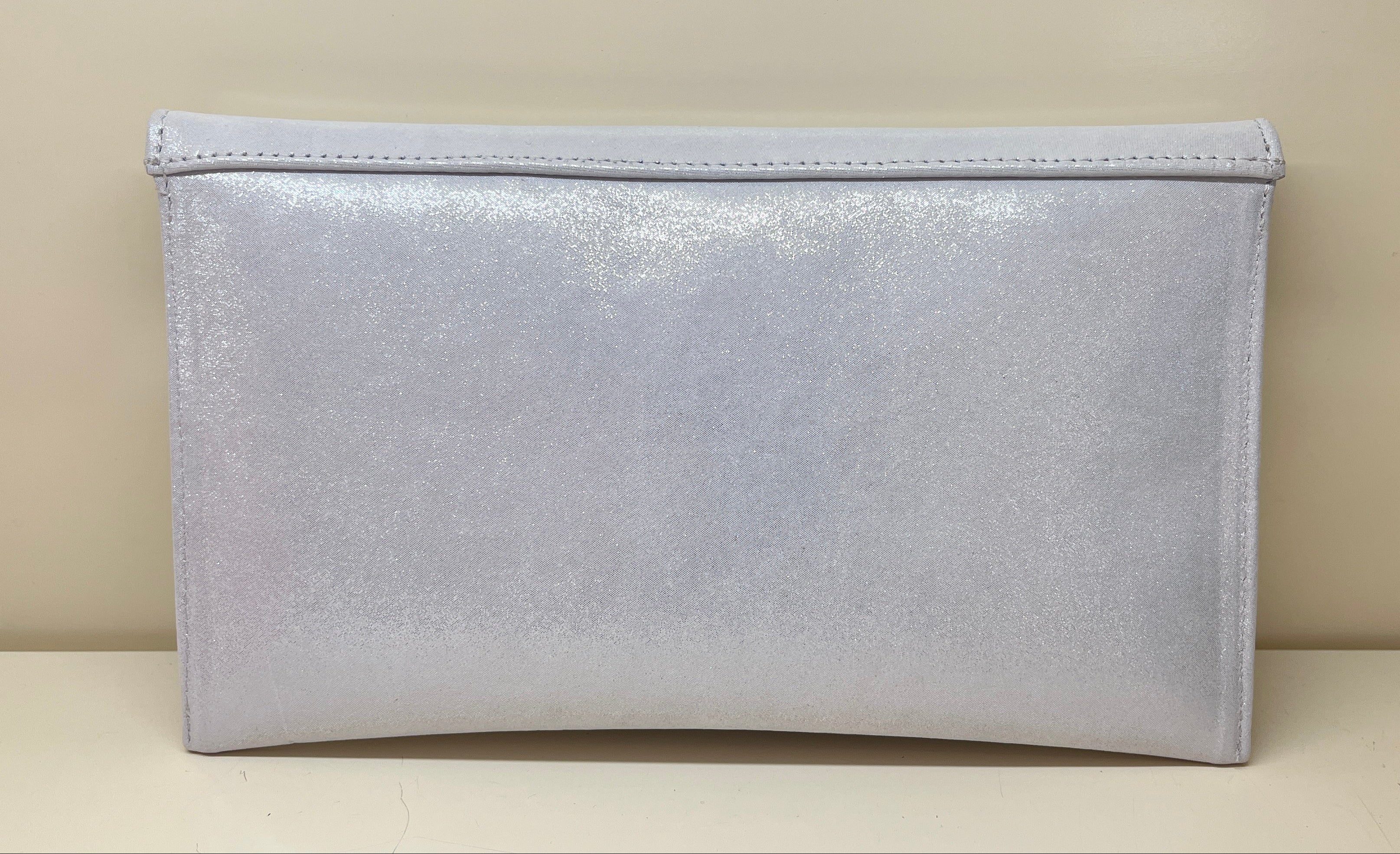 FABUCCI Silver Shimmer Envelope Clutch Bag