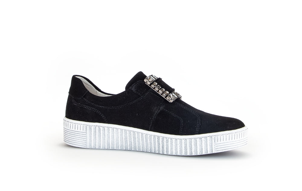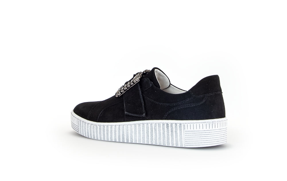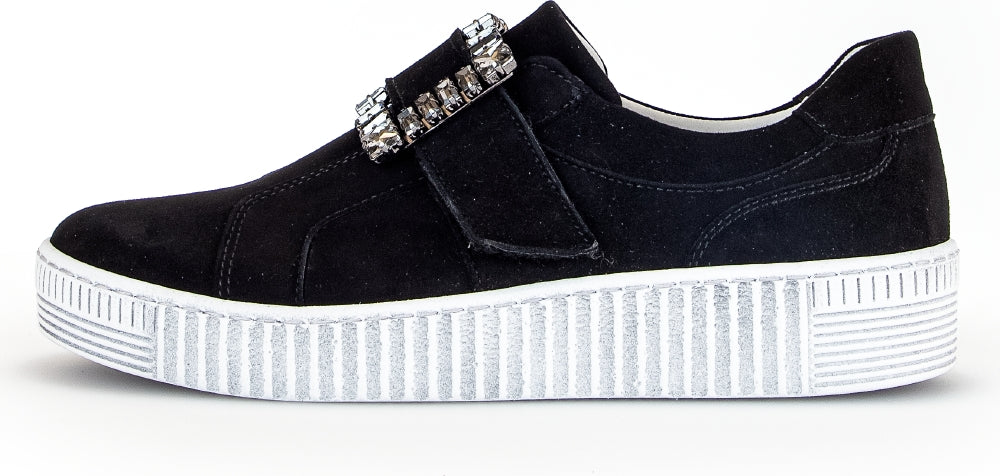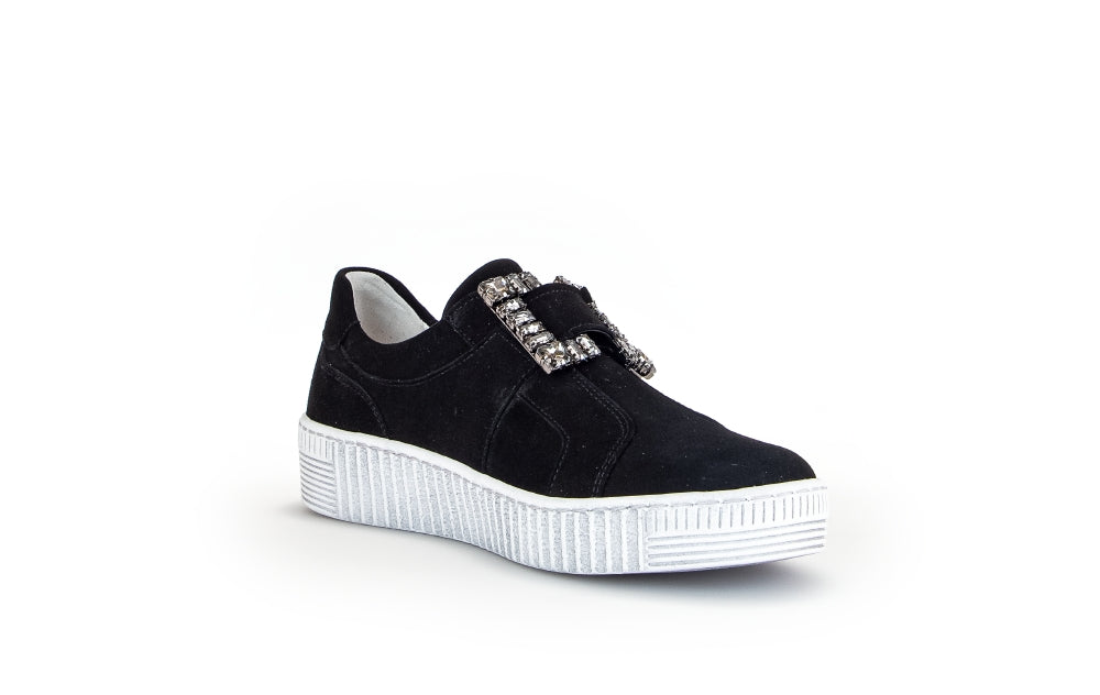 Gabor Black Suede slip on trainer with Diamante Buckle 33817