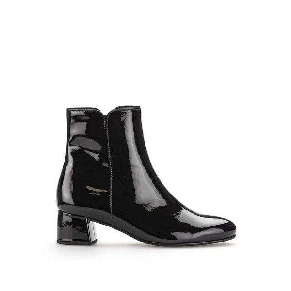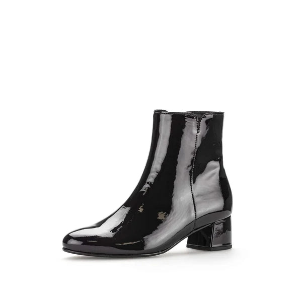 GABOR Black Patent Block Heel Ankle Boot 68097