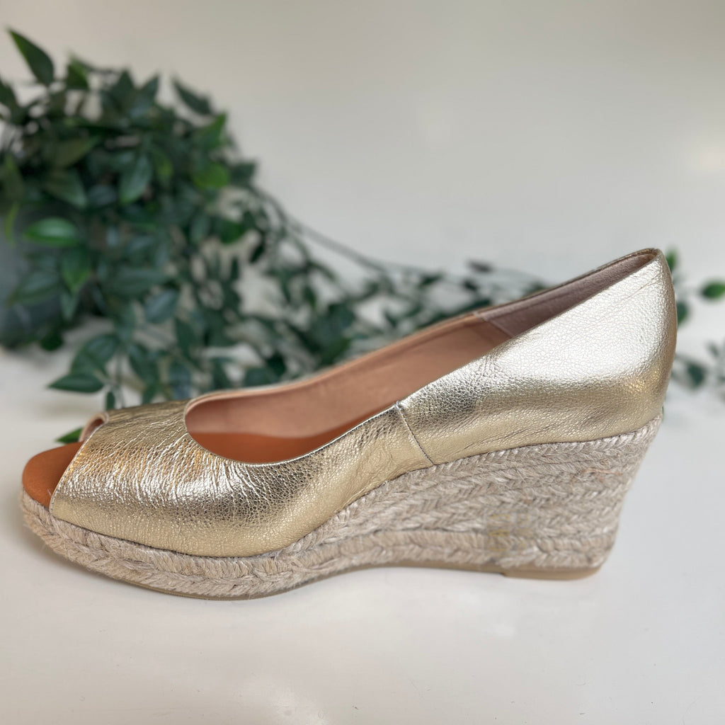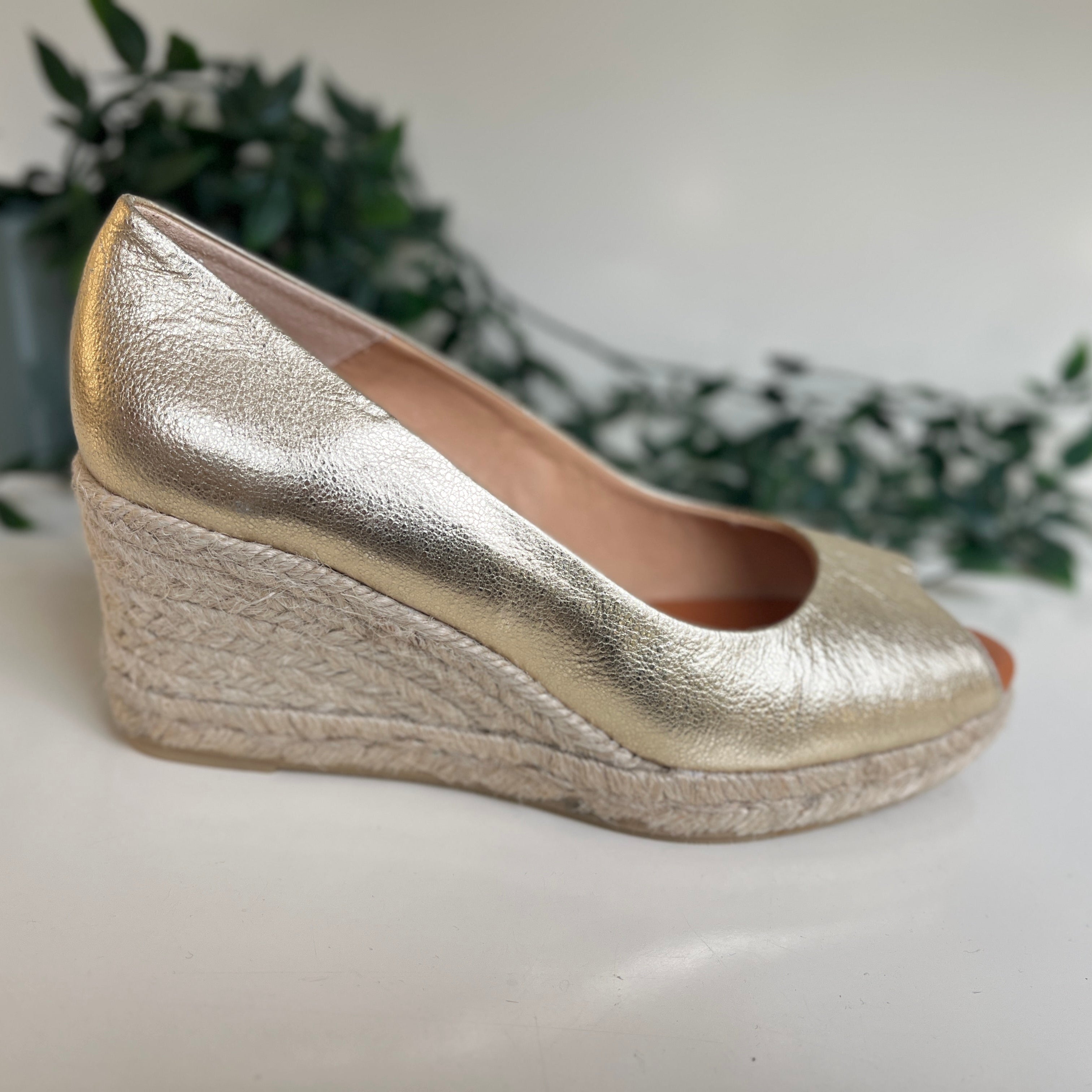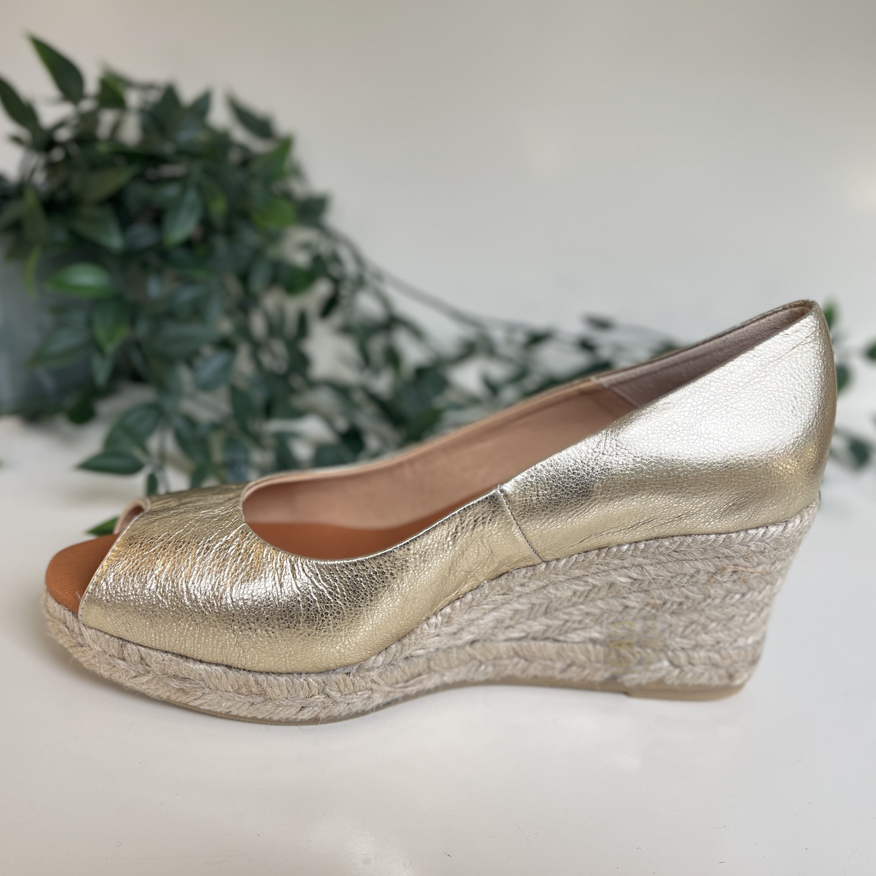 MARIAN Gold Peep Toe Wedge  Espadrille Shoe