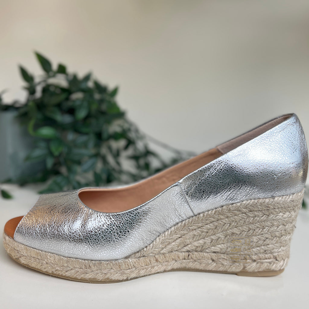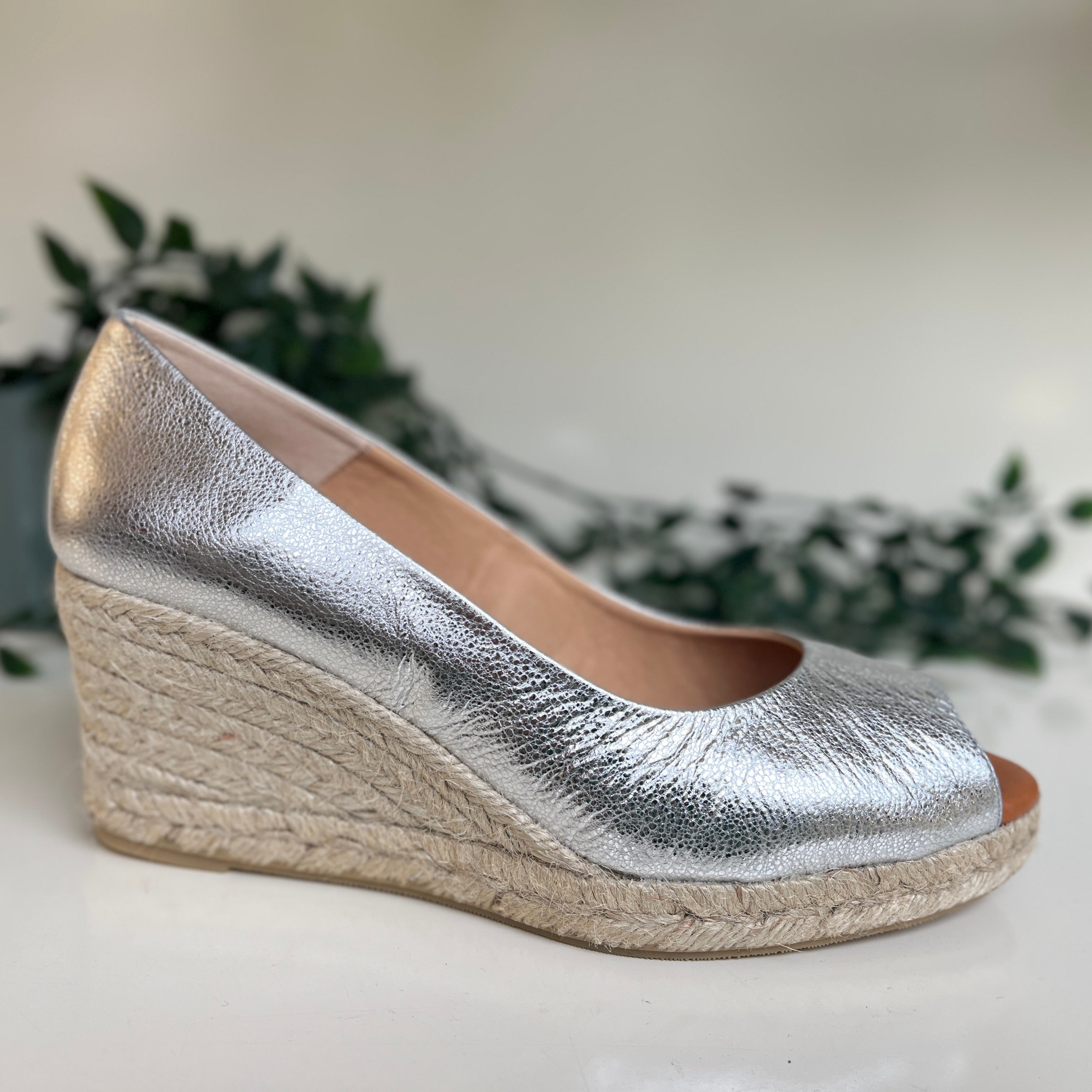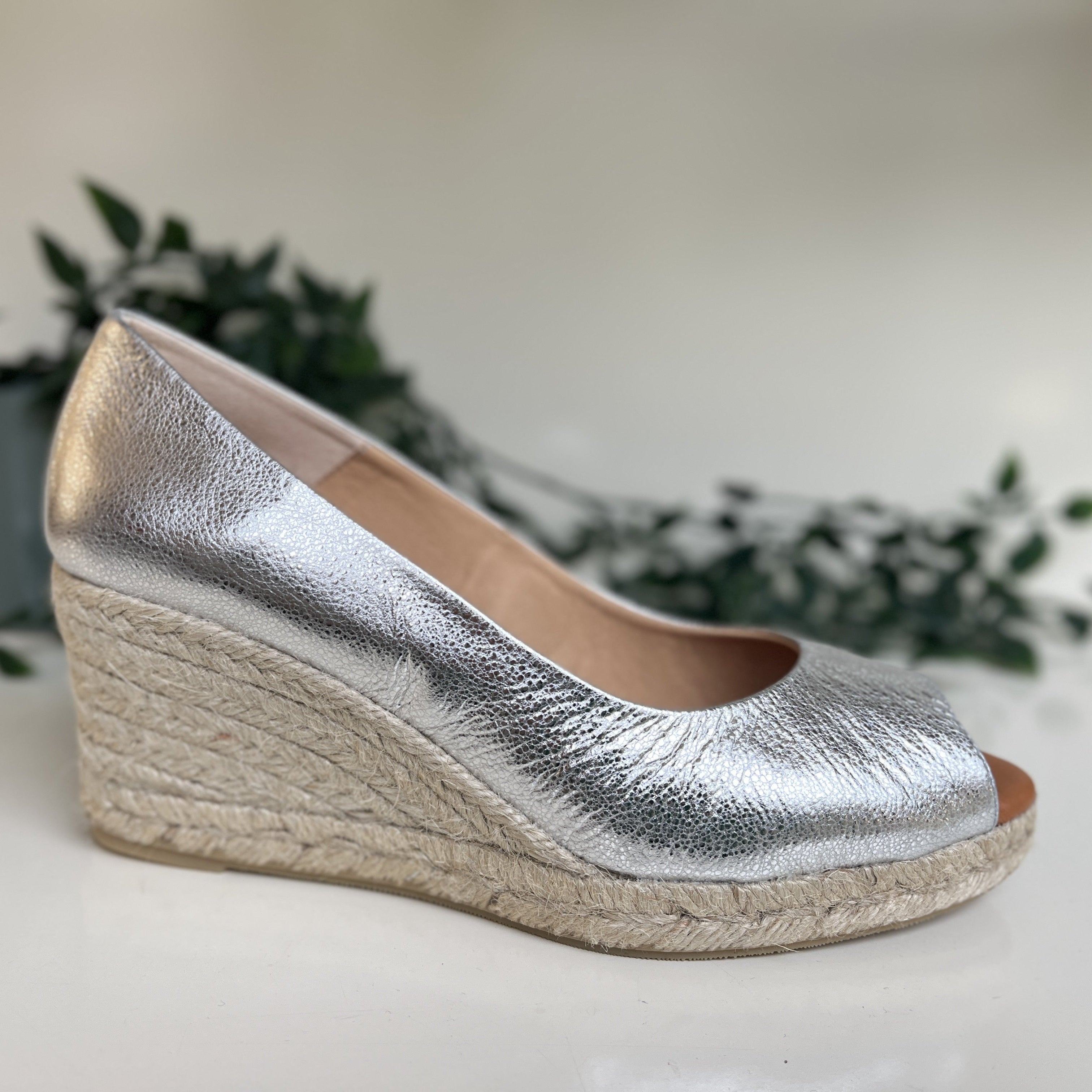 MARIAN Silver Peep Toe Wedge Espadrille Shoe