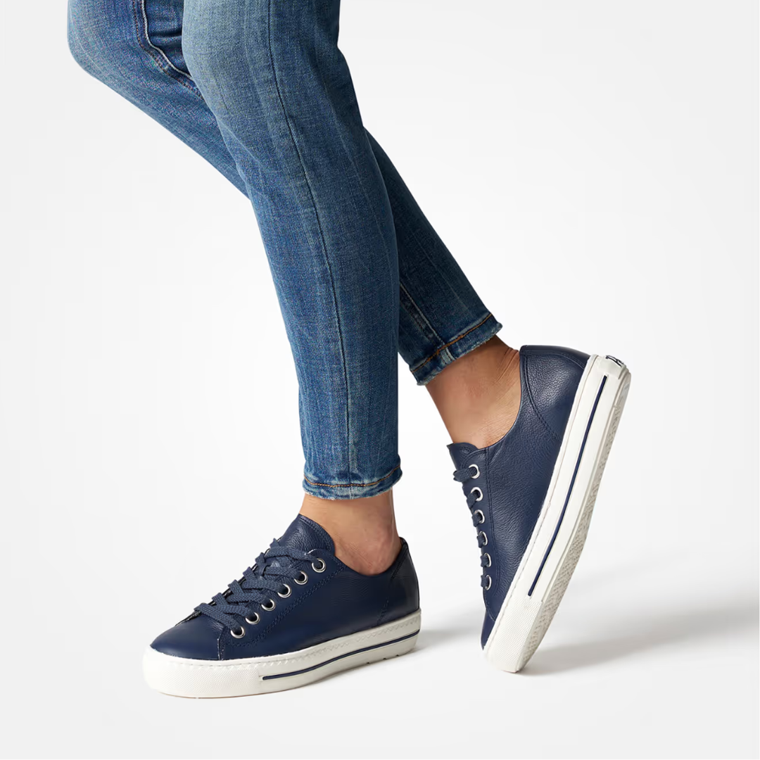 These super soft wedge trainers are the only ones youll need this Season. The extra light sole is flexible and cushioned at the same time. Being a simple navy leather youll team this with everything from dress to jeans all year round.