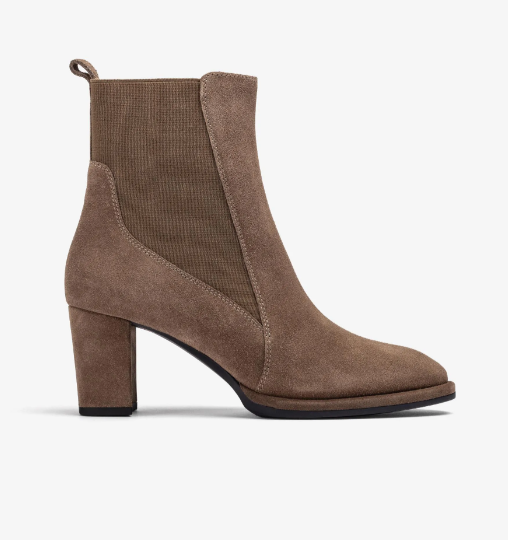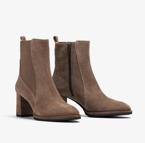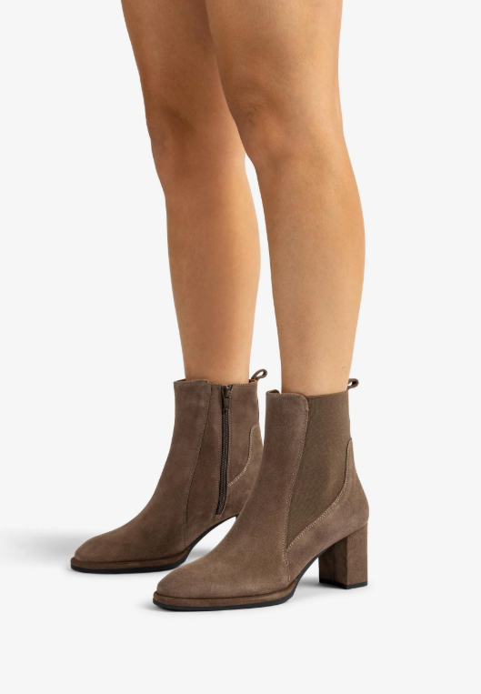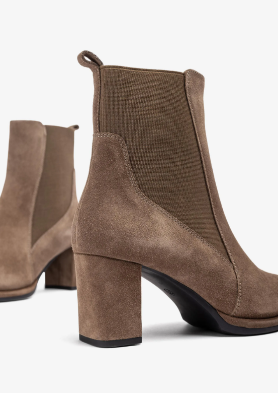 UNISA LUANCO Taupe Suede Ankle Boot Round toe ankle boot made in suede. 7cm high heel in a matching tone and a 1cm platform in suede. Inner zip and a matching tone side gusset. Light, flexible, non-slip rubber sole. Elegance and comfort in the same ankle boot.