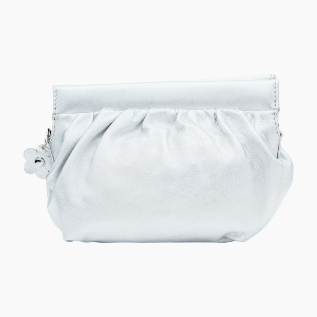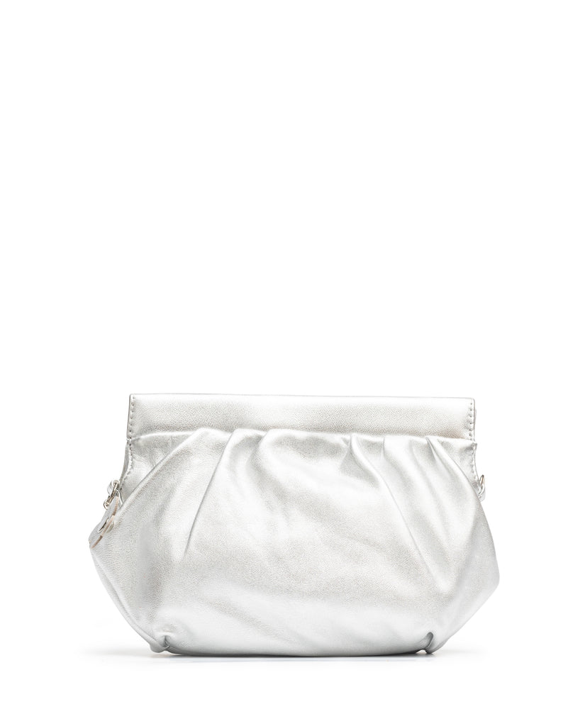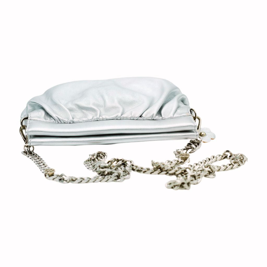 • Features: Silver leather clutch bag , with magnet button fastening, comes with a detachable silver chain strap that can be worn on the shoulder or crossbody, inside slip pocket.